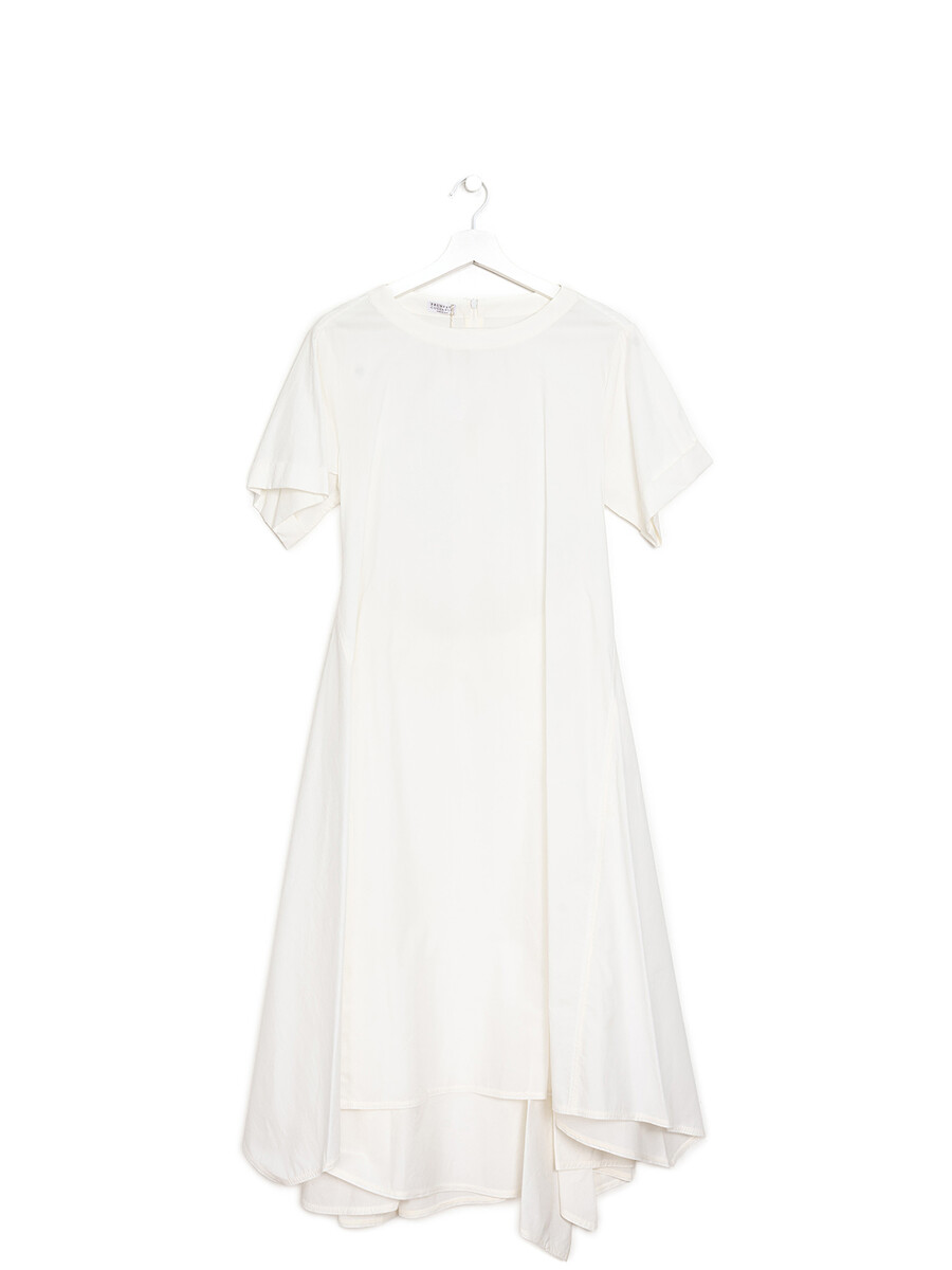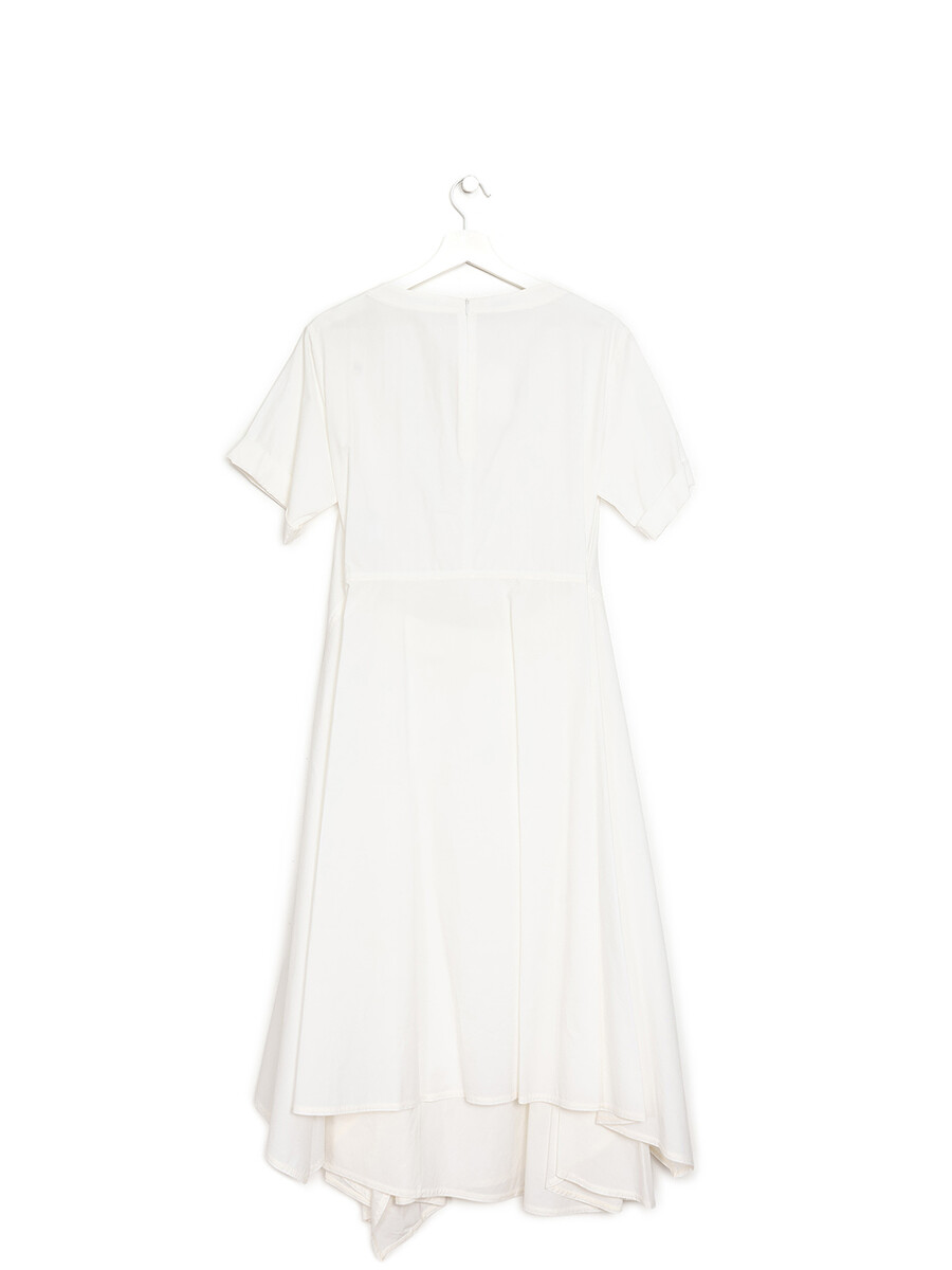 Maxi white dress with short sleeves. Round neckline. Zipper closure at back. Includes matching belt. Comes with tag and hanger.