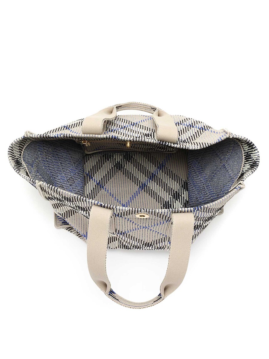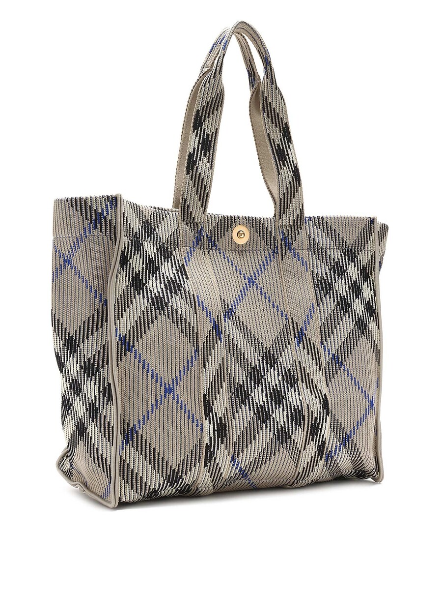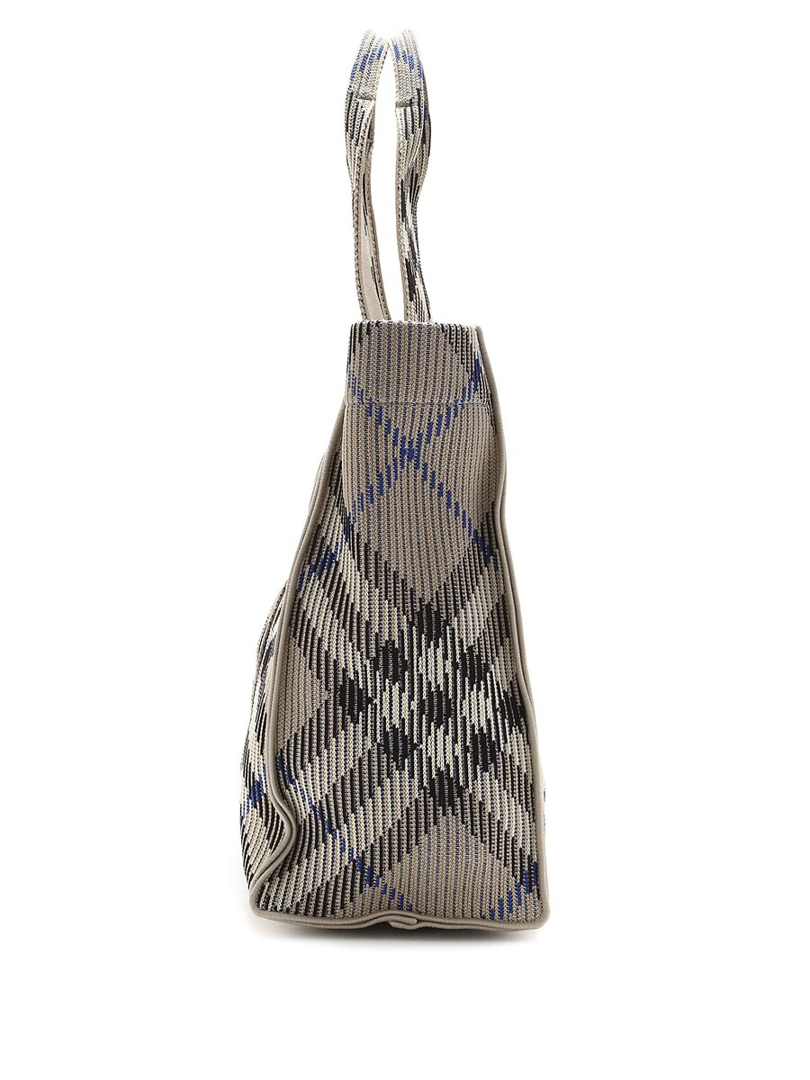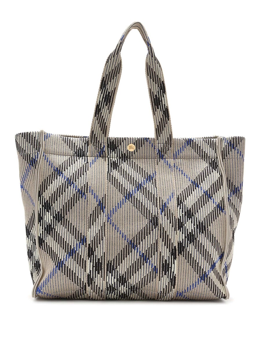 Check pattern canvas tote bag in grey. Two carry handles. Gold-tone hardware. Spacious interior suitable for everyday use.