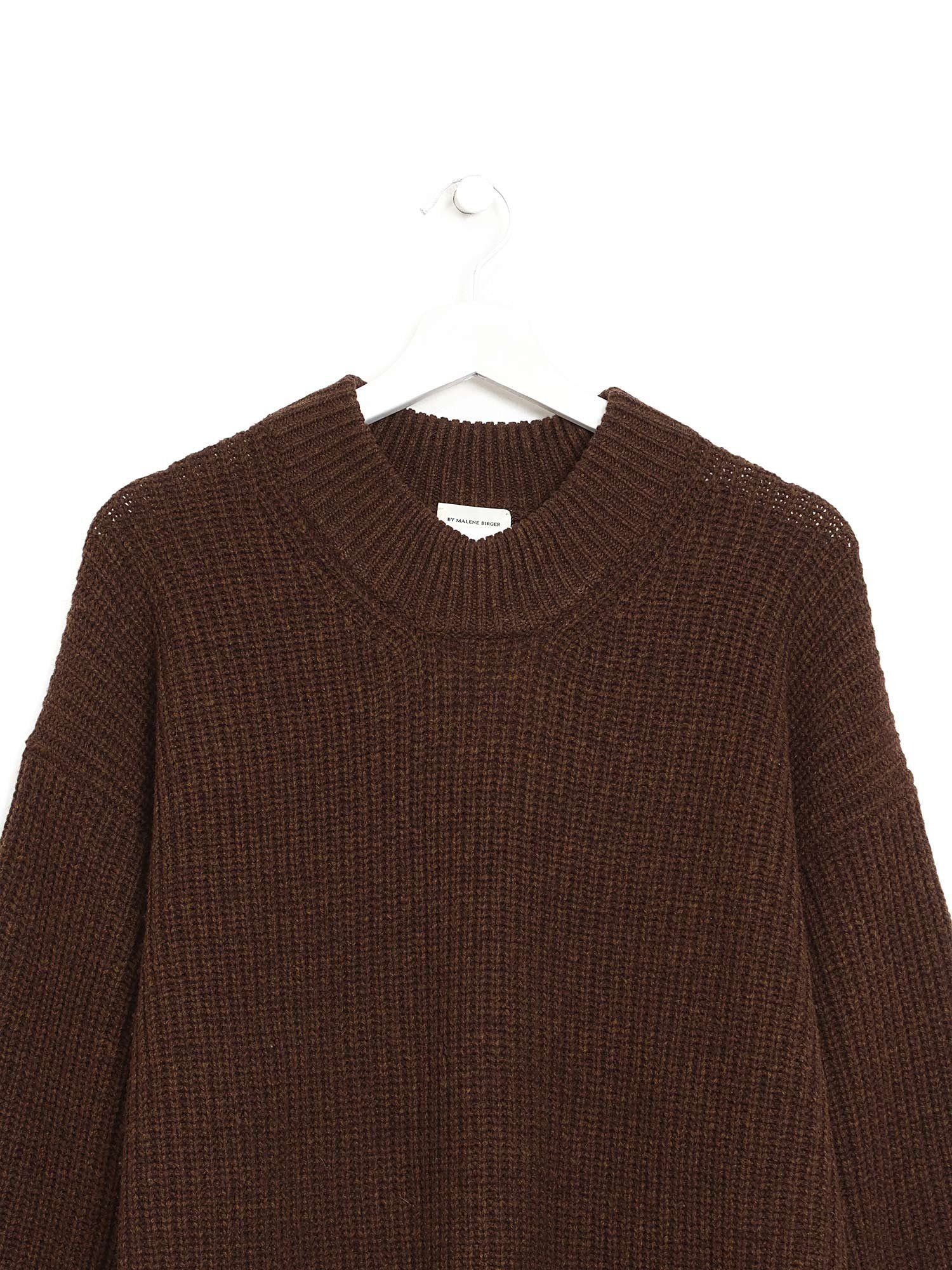 Ribbed knit long sleeve sweater in brown.
