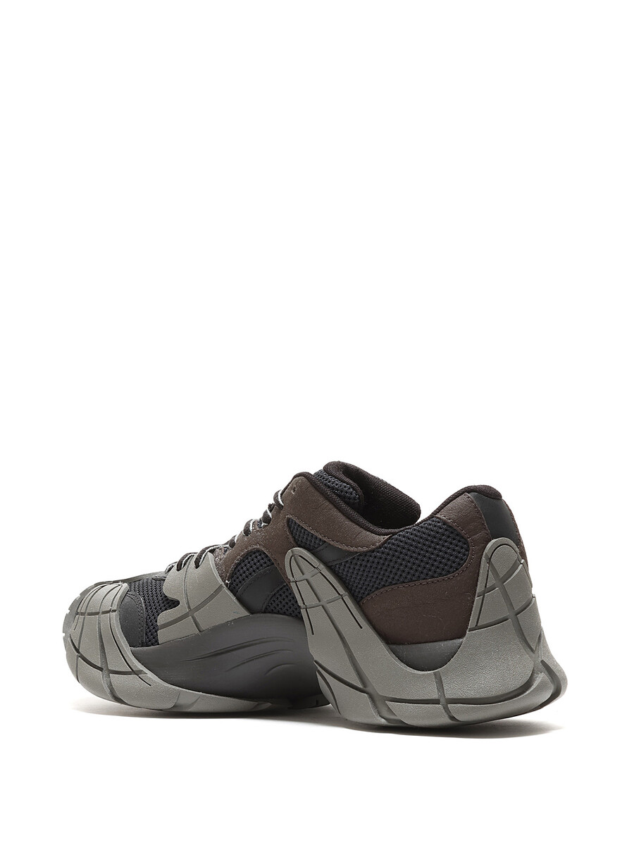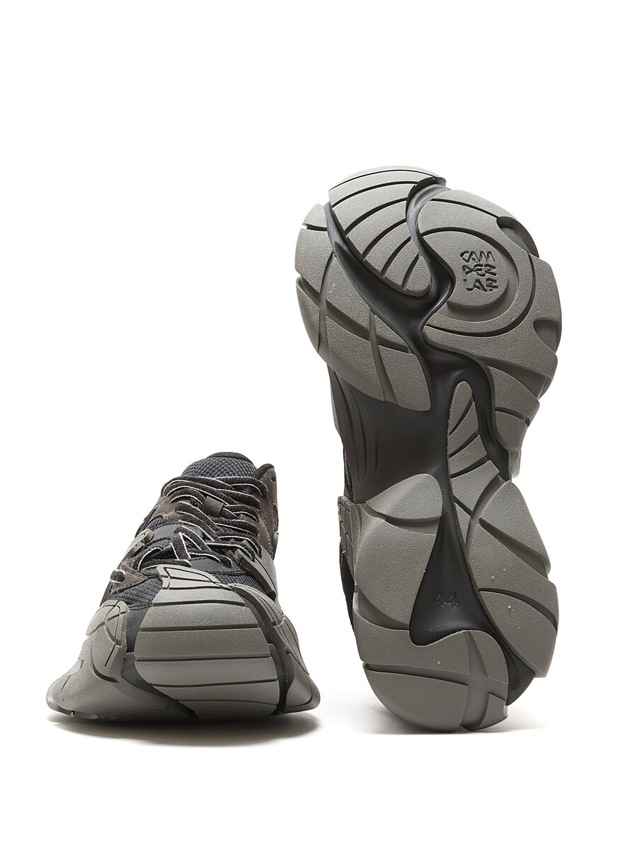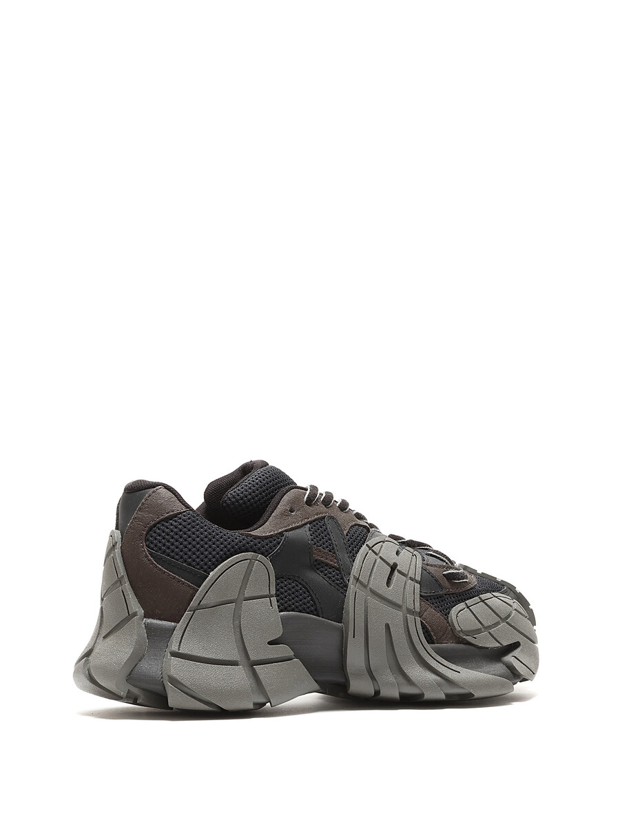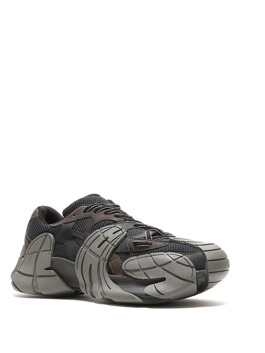 Chunky lace-up sneakers with a mesh and synthetic upper in black and gray. Featuring a round toe and a lug sole for enhanced grip.