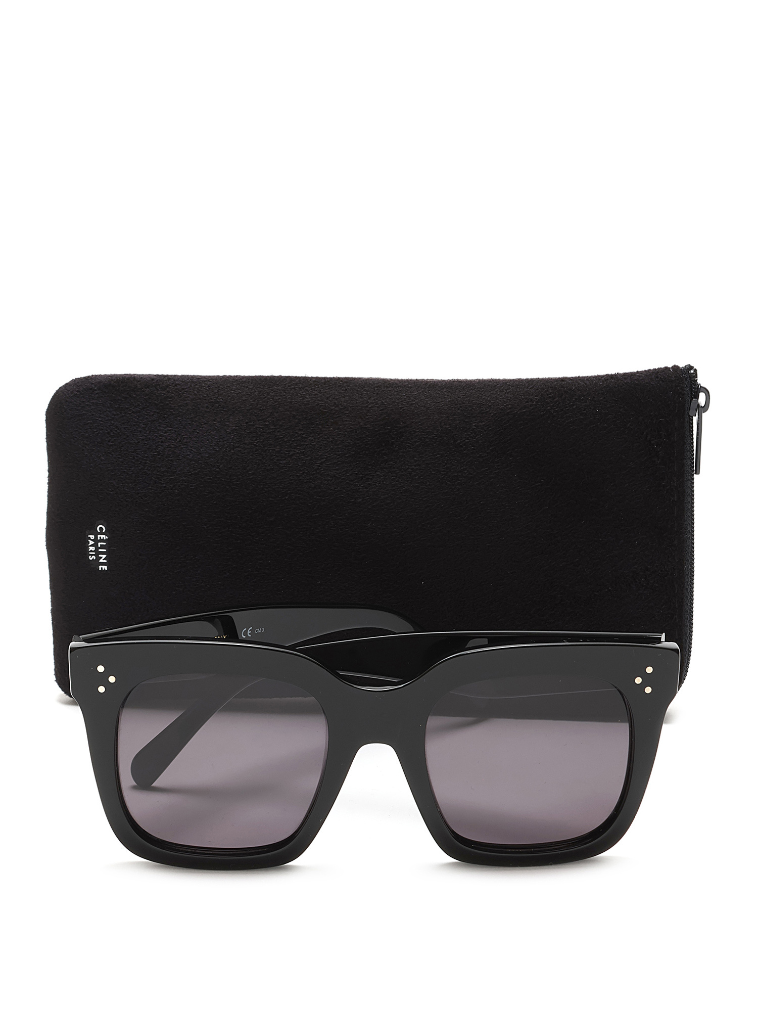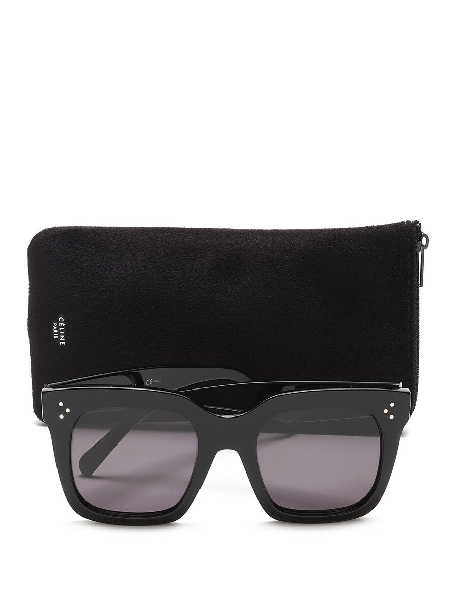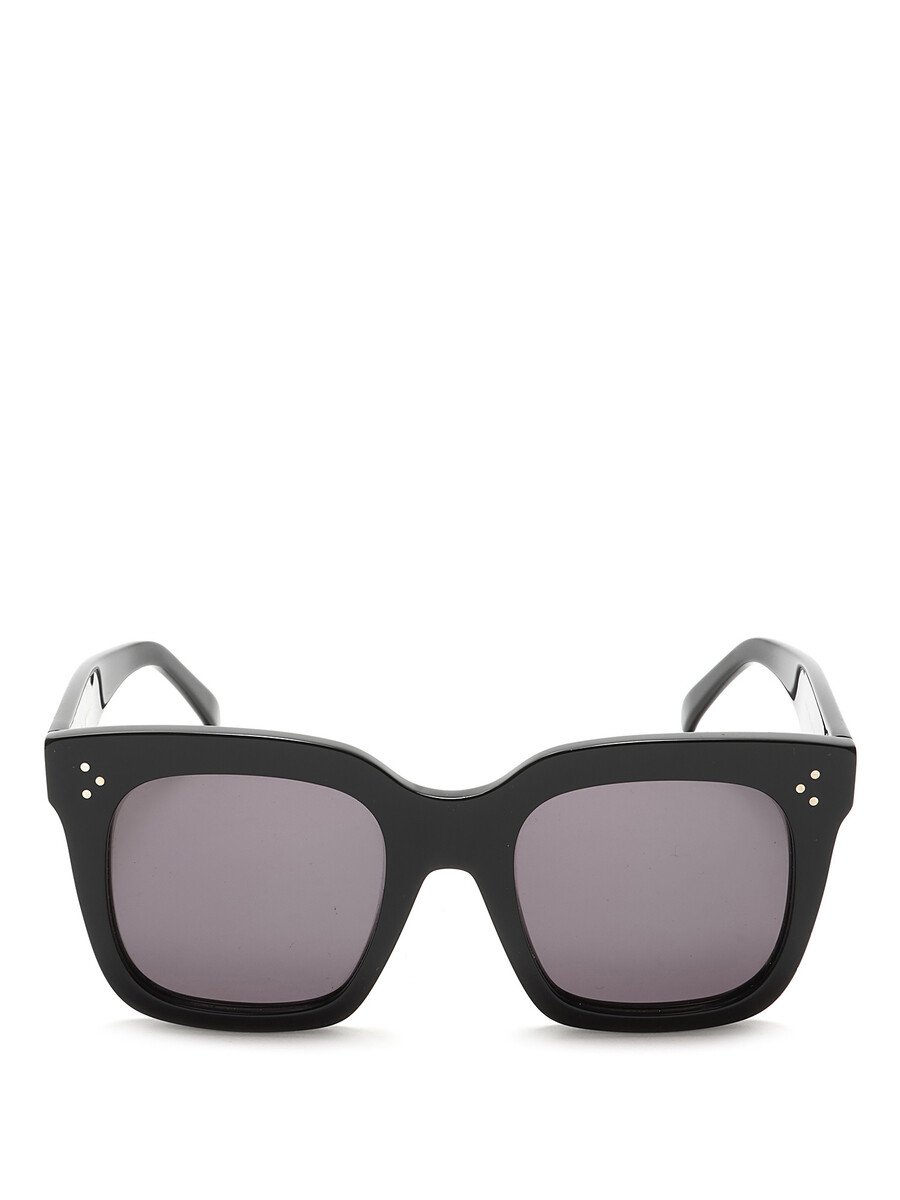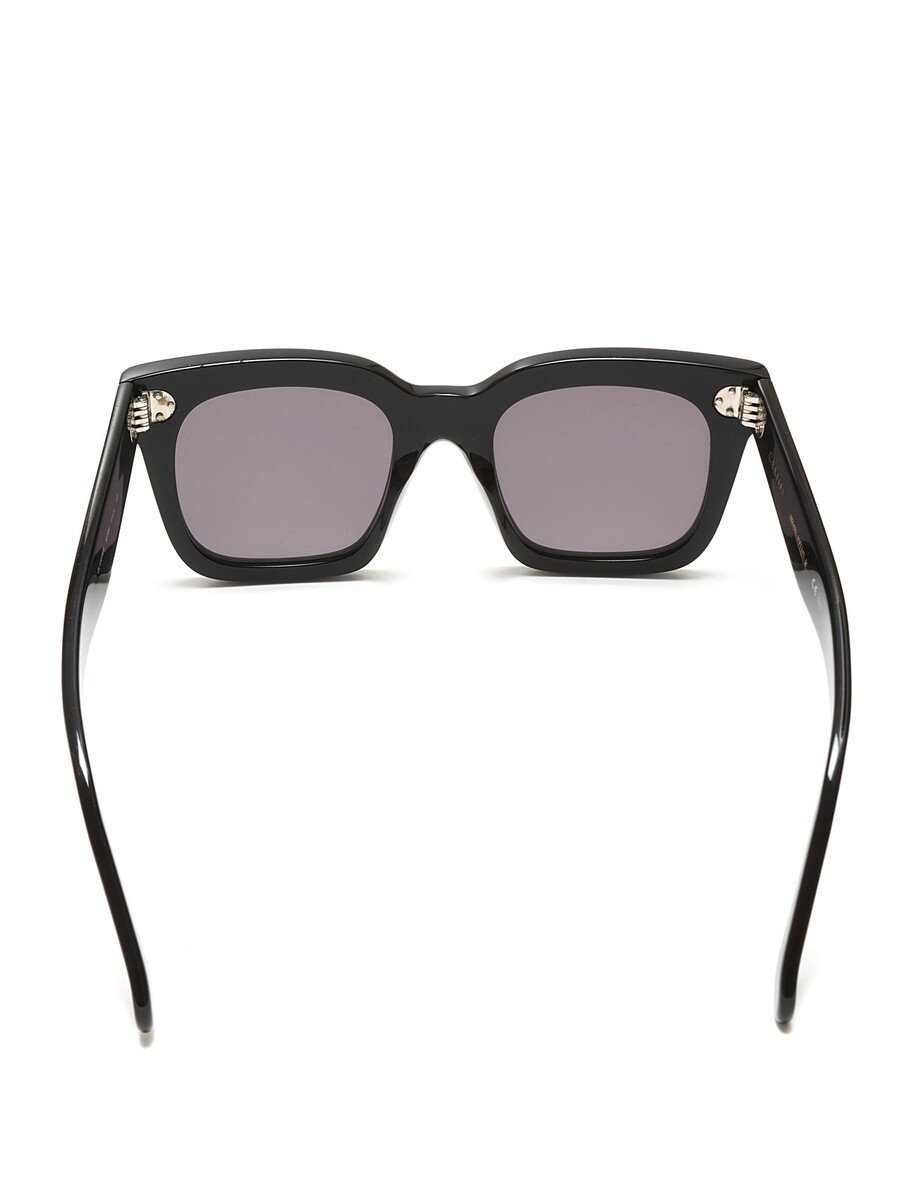 Square-shaped acetate sunglasses in black with grey lenses. Silver-tone hardware. Comes with a soft case.