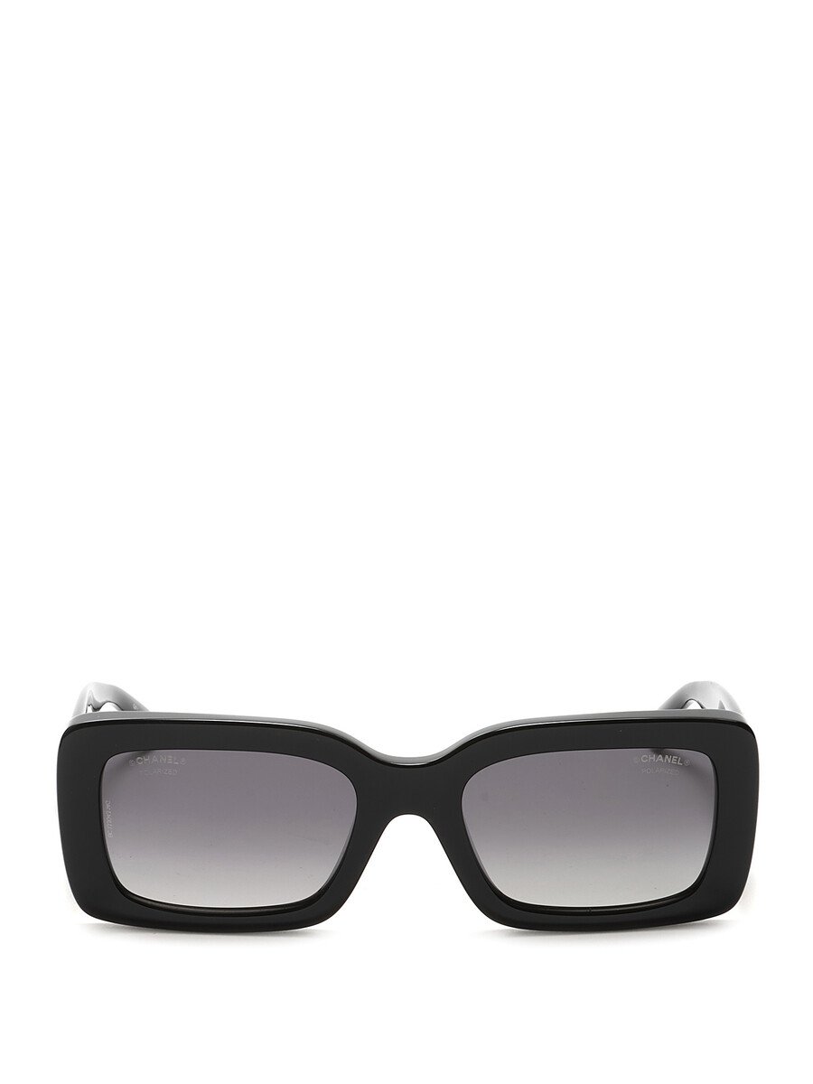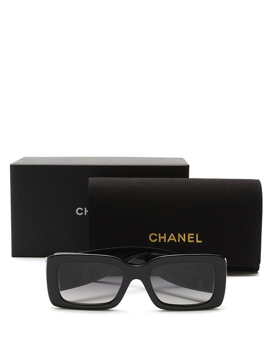 Square sunglasses in black acetate with gold-tone CC logo on the temples.