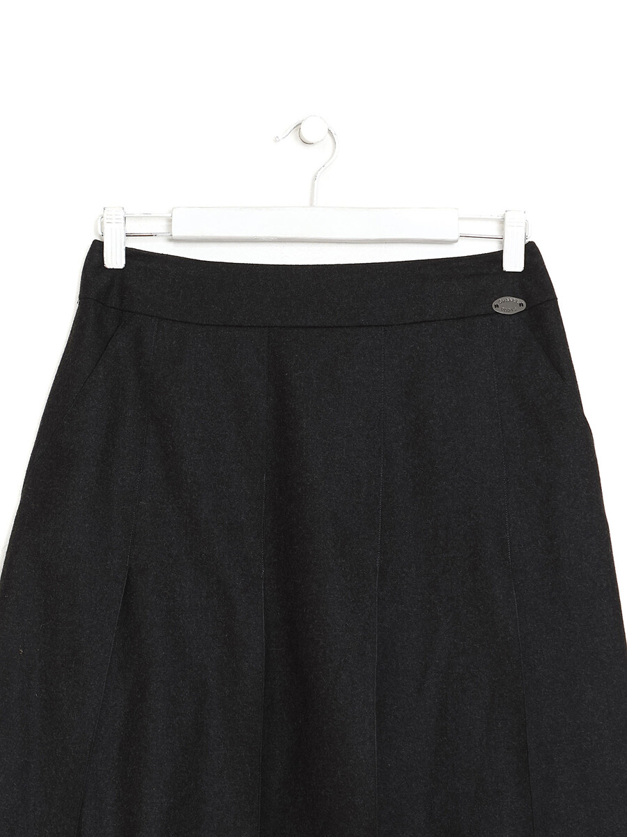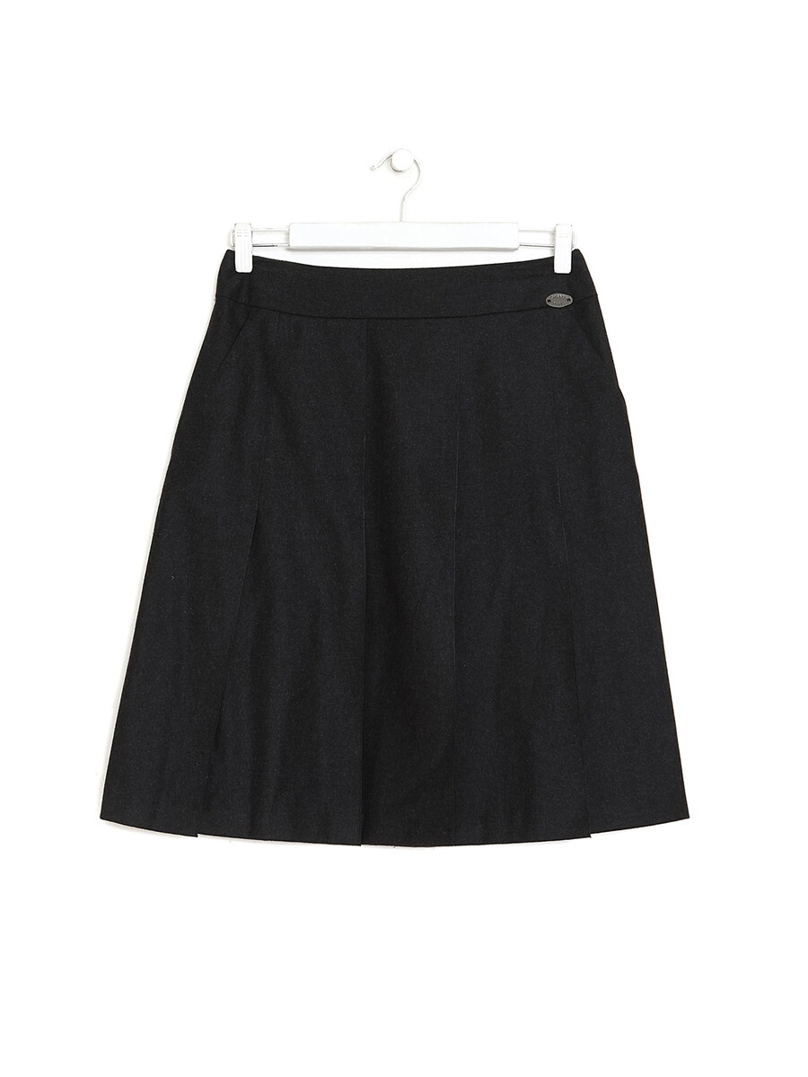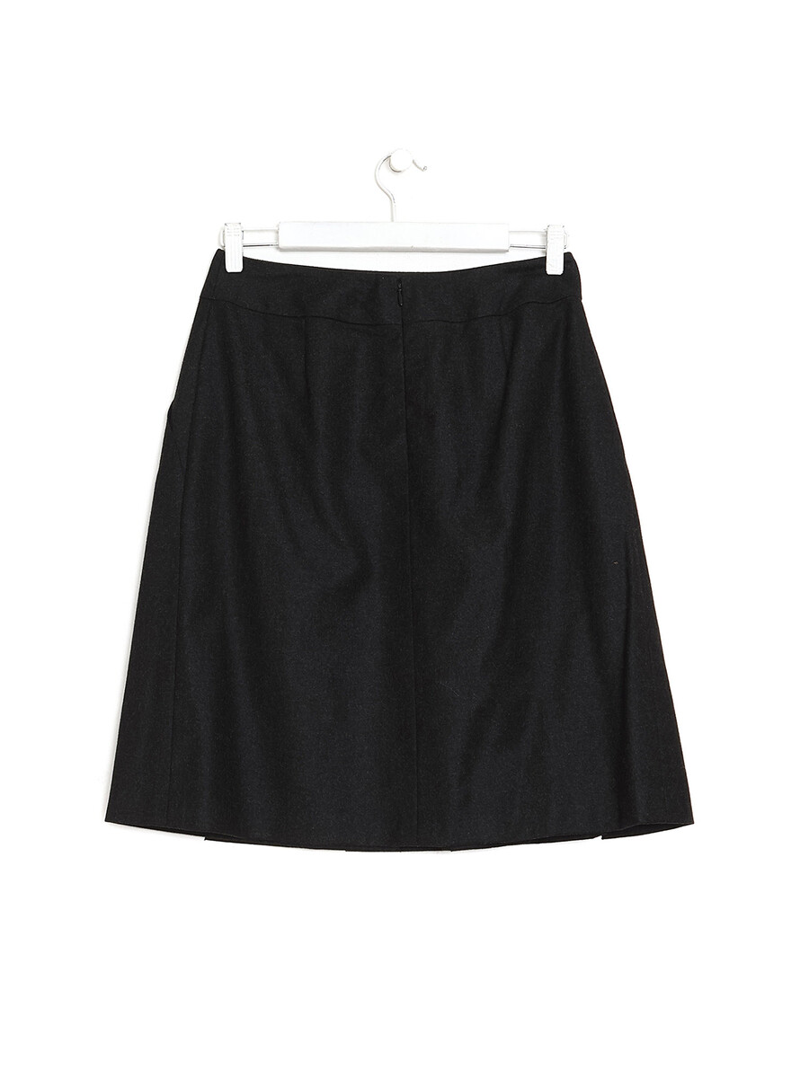 Pleated midi skirt in black wool and cashmere blend. Zipper closure at side.