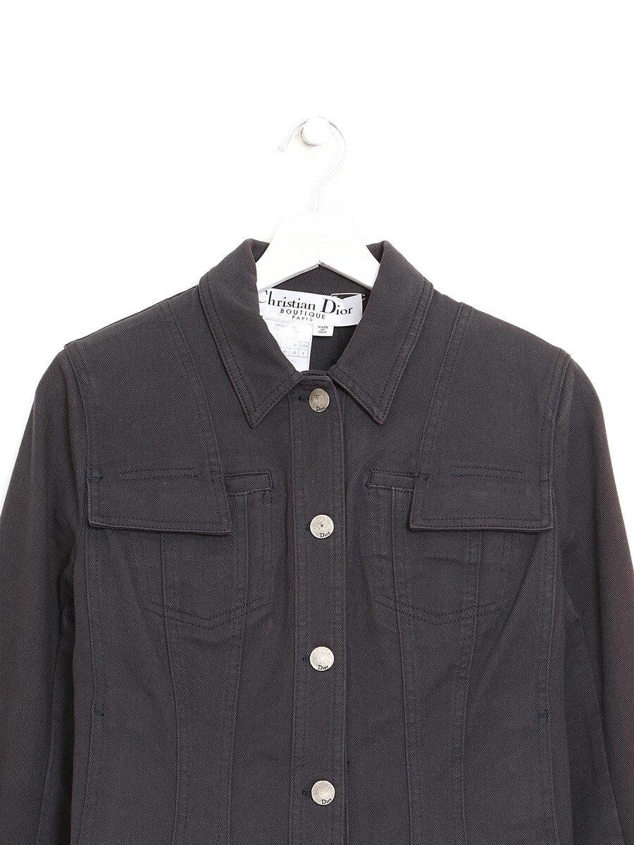 Long sleeve cotton-blend trucket jacket in grey. Button closure. Classic collar. Flap pockets.