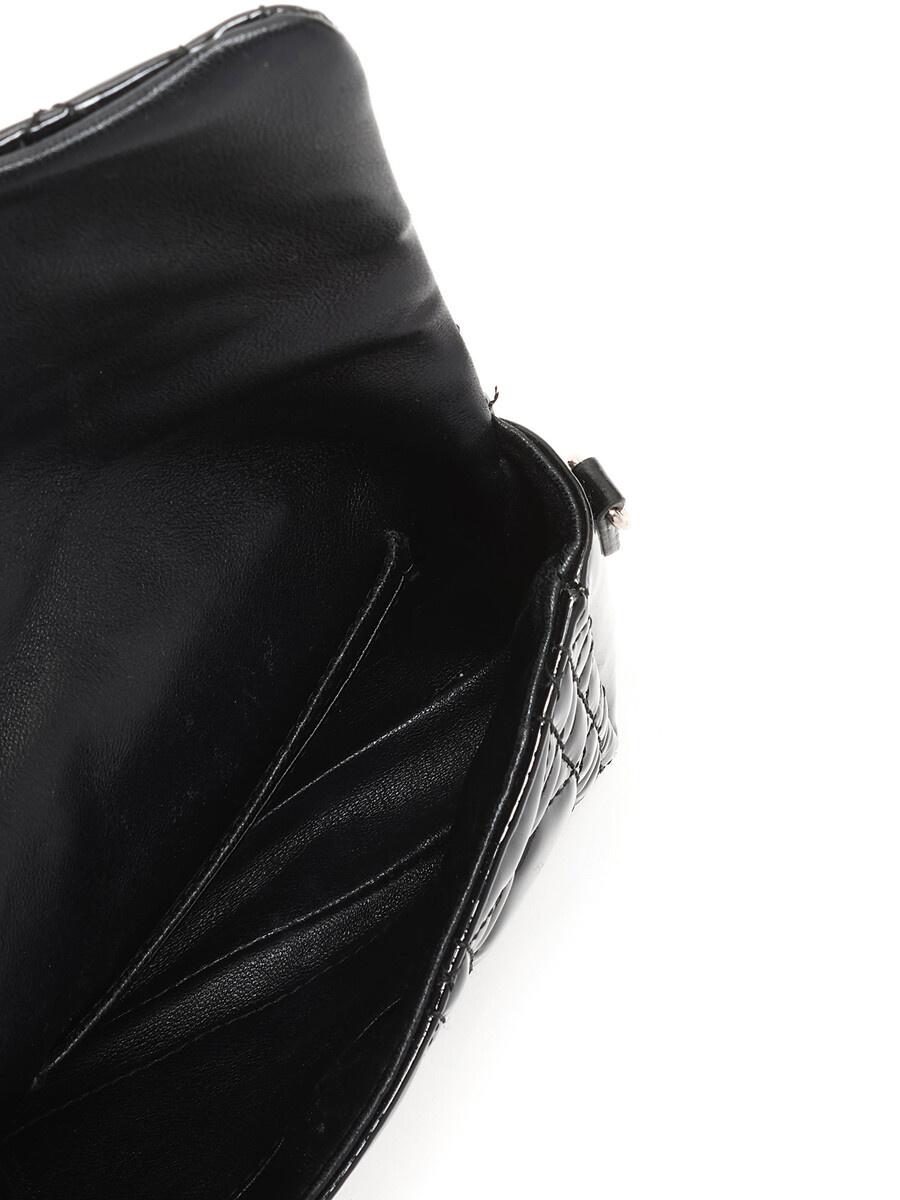 Varnished Cannage leather shoulder bag in black. Chain shoulder strap. Twist-lock closure. Silver-toned hardware. Leather accents.
