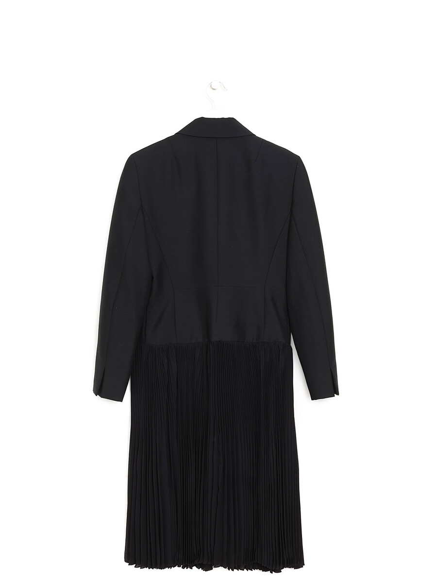 Two-button mohair blazer in black. Pleated detailing around the skirt. Fully lined in silk.