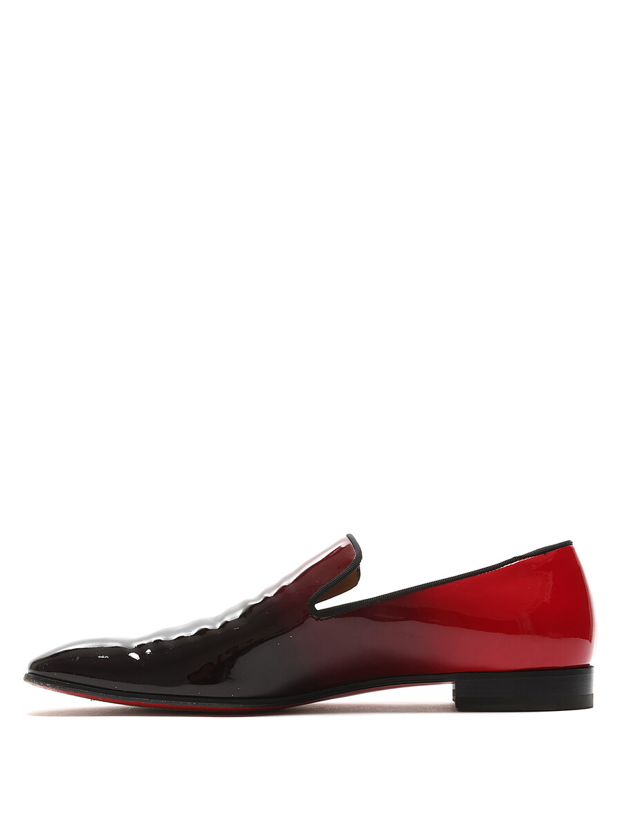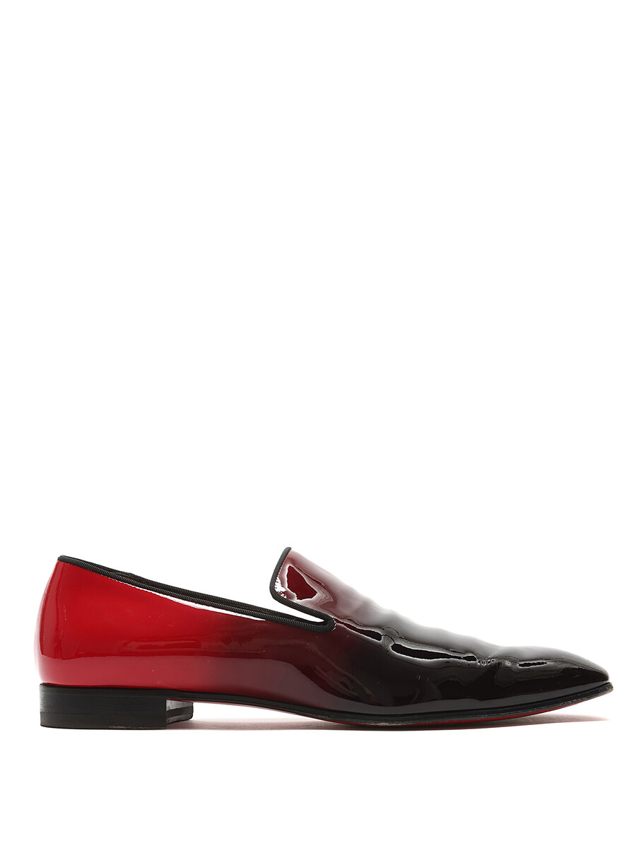 Patent leather loafers with a gradient from black to red. Slip-on style. Round closed toe. Leather sole. Comes with a dustbag.