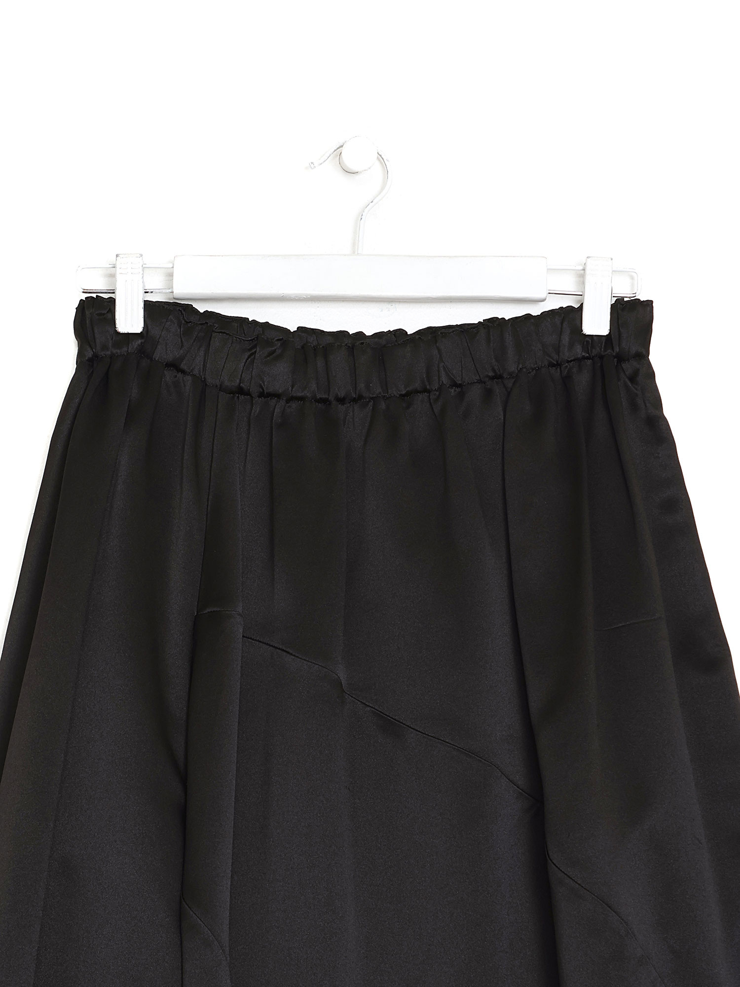 Black silk-blend mid-length skirt with an elastic waistband. Semi-sheer inlays. Subtle sheen finish.