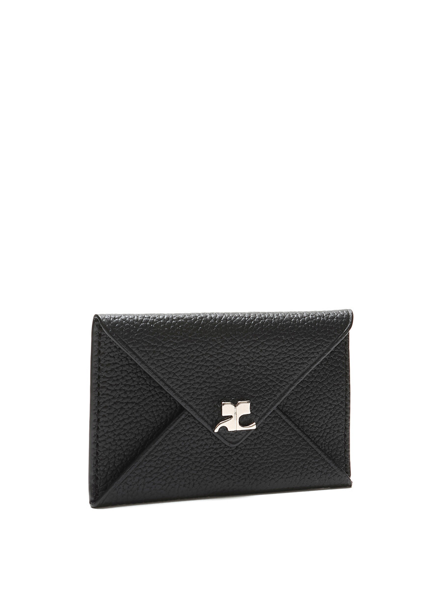 Compact ML wallet in black textured leather. Embossed logo on front. Snap fastening with silver-tone stud detailing. Comes with a dust bag.