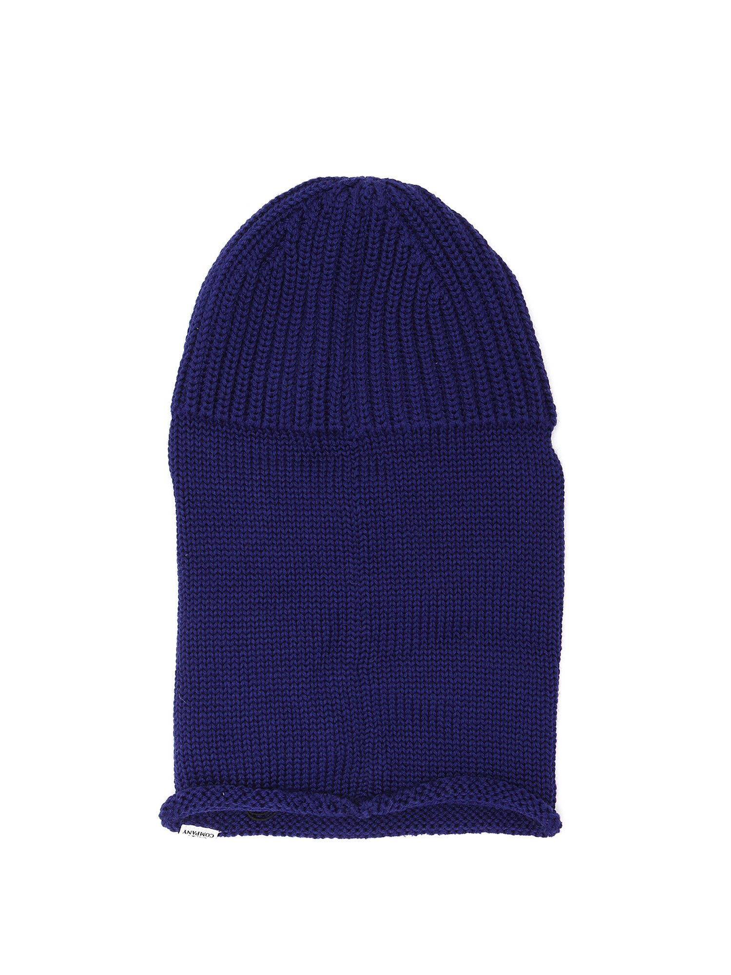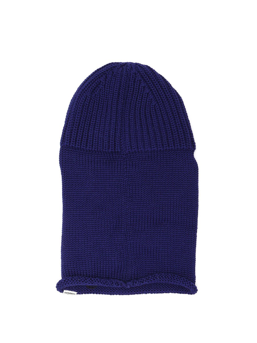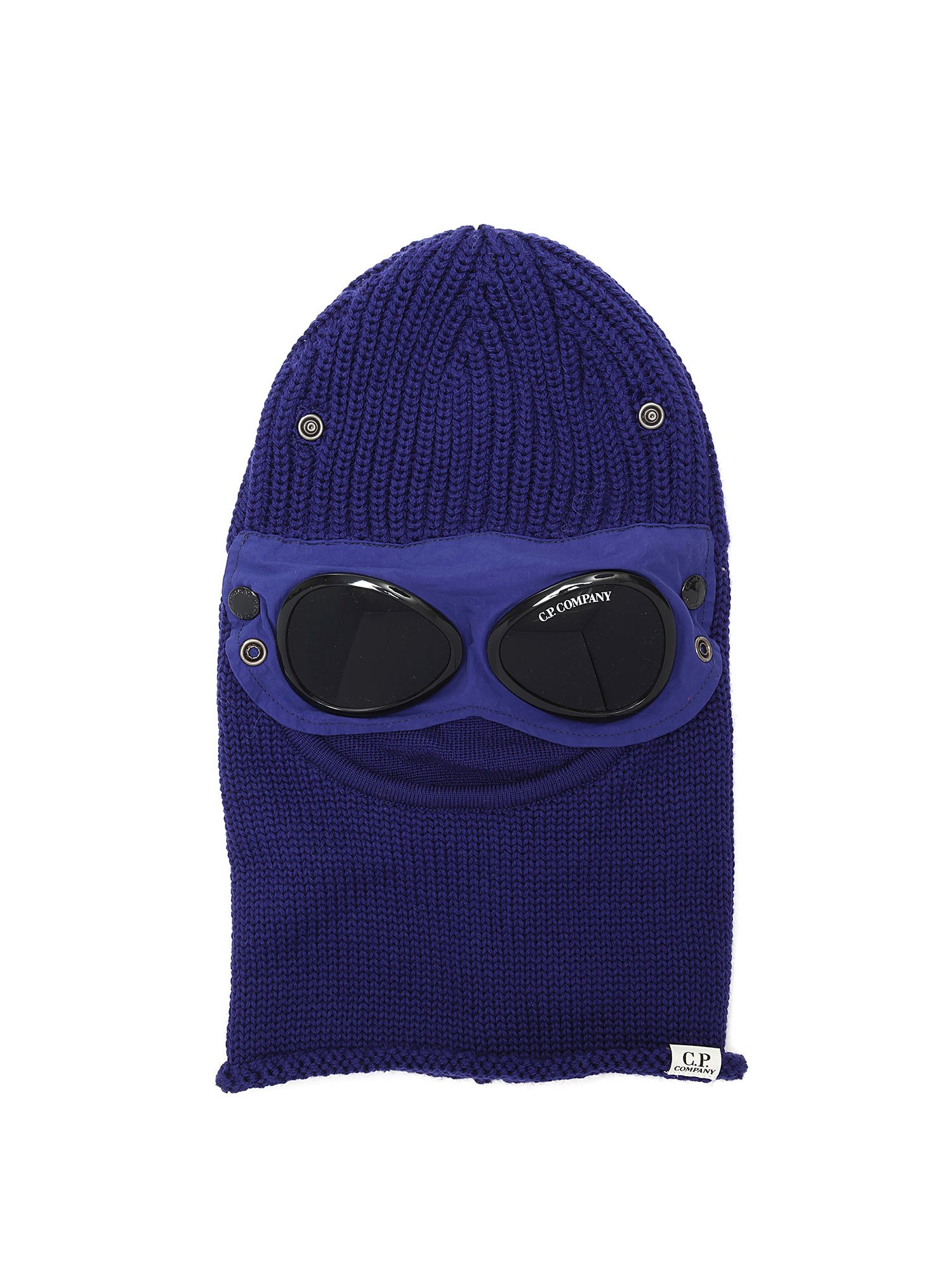 Knitted merino wool beanie in purple featuring signature goggle detail.