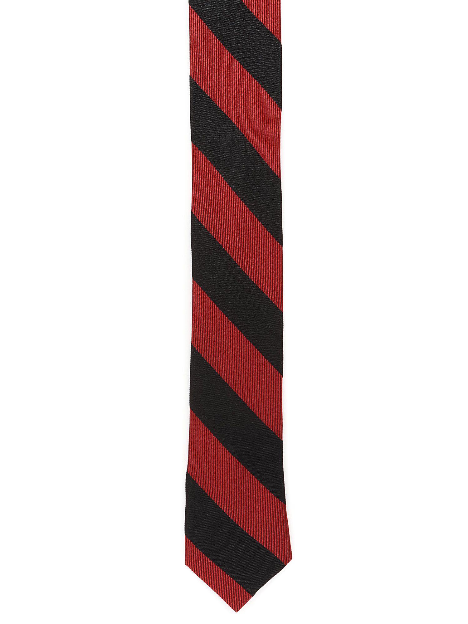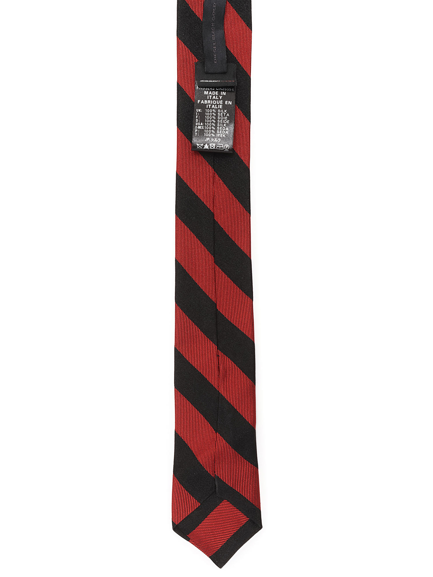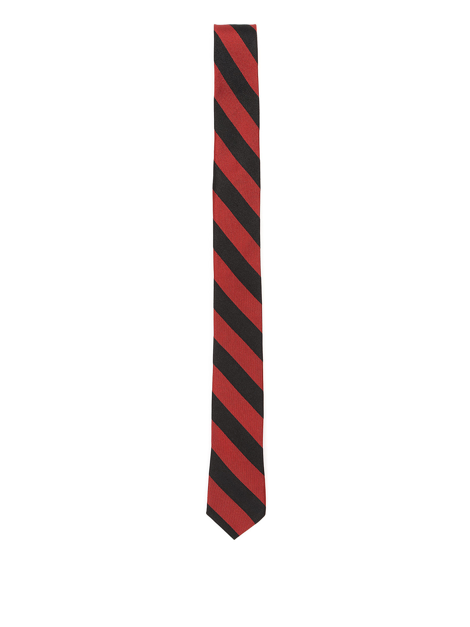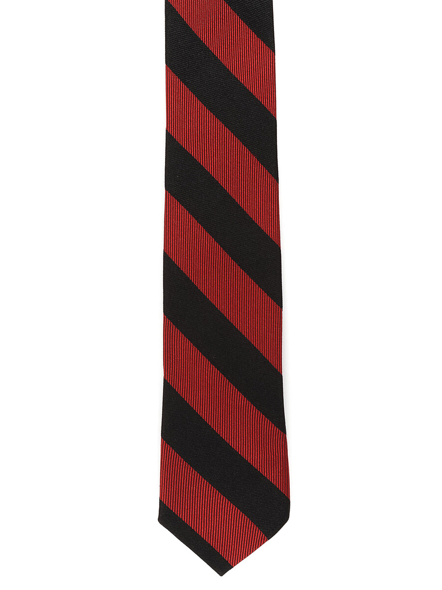 Striped silk tie in blue and red.