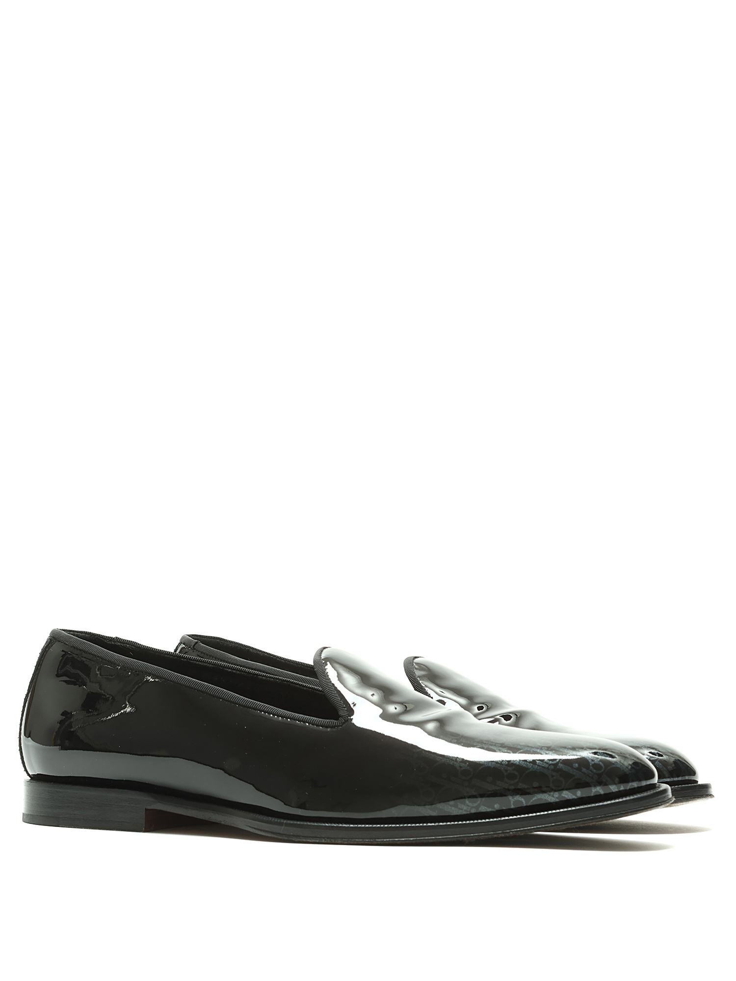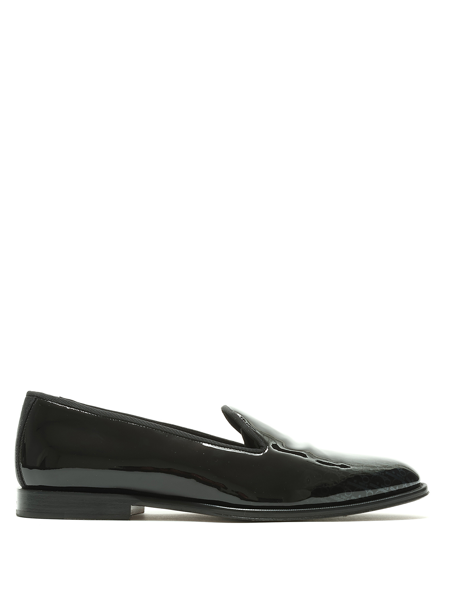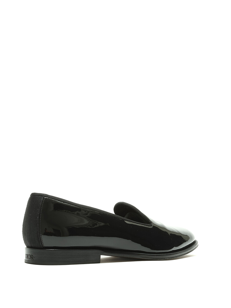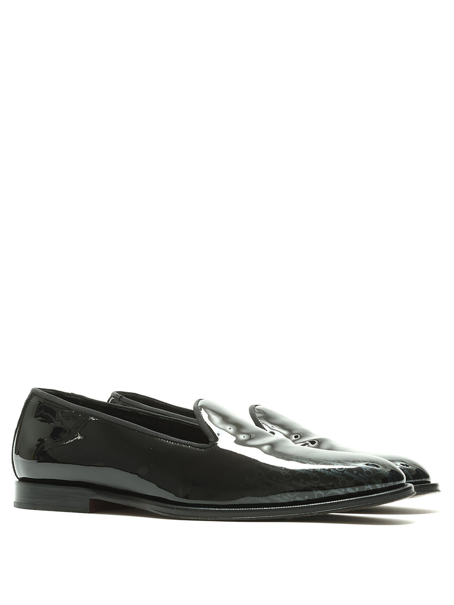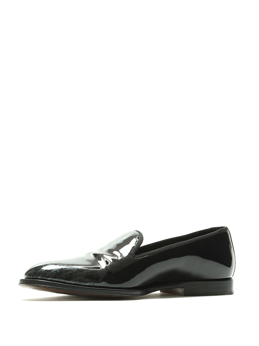 Patent leather loafers featuring a monogram motif in black. Round toe. Leather sole. With box.