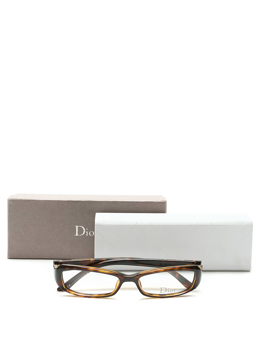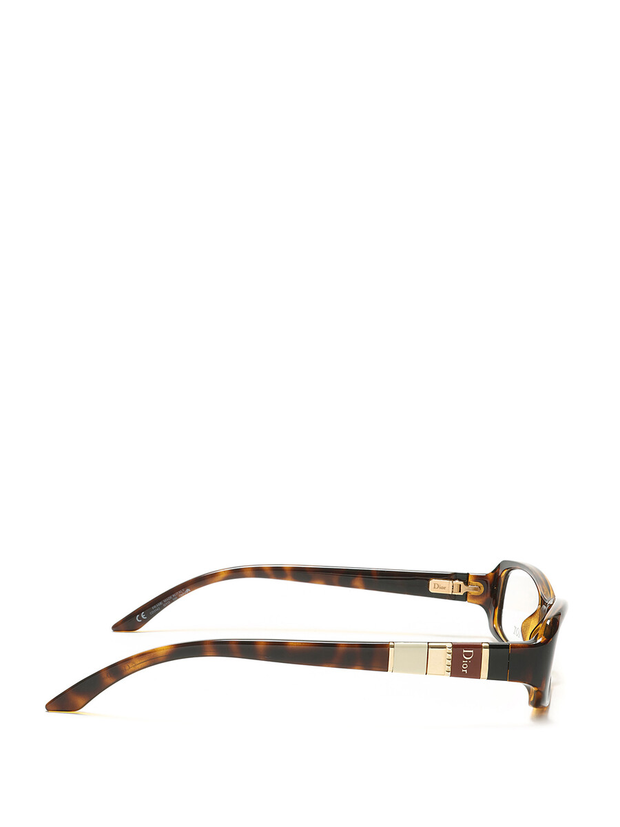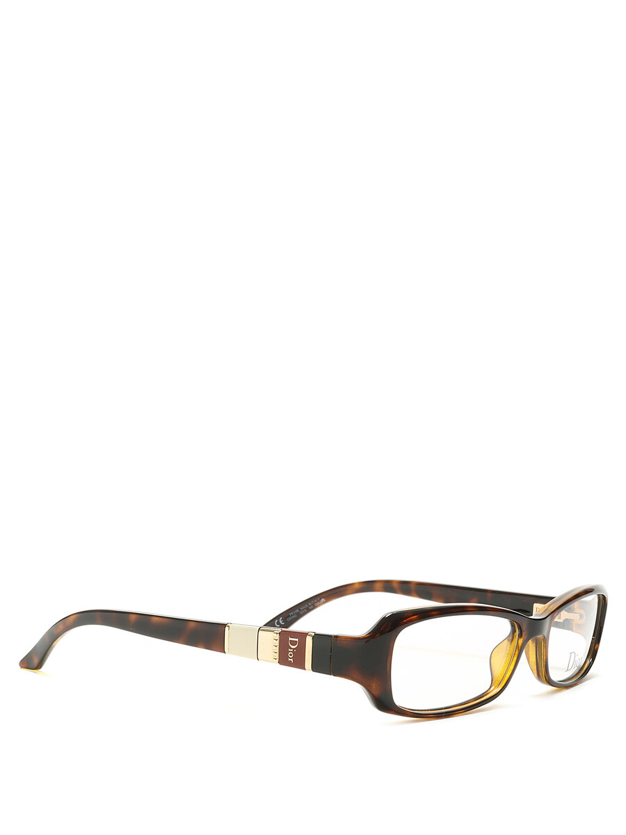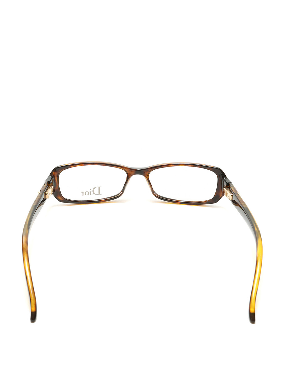 Rectangular acetate glasses featuring a tortoiseshell motif. Gold-tone engraved logo on the arms. With case and box.