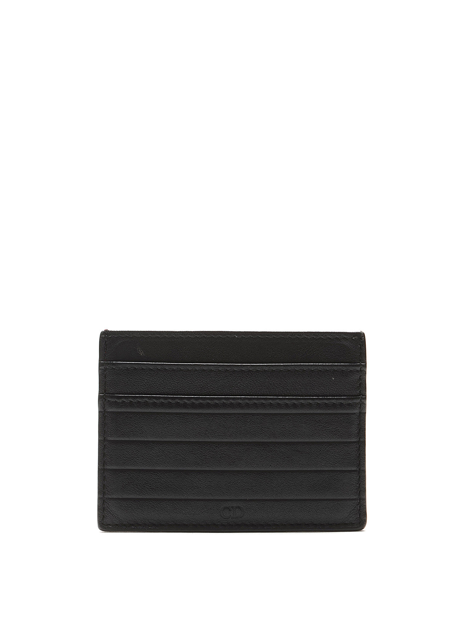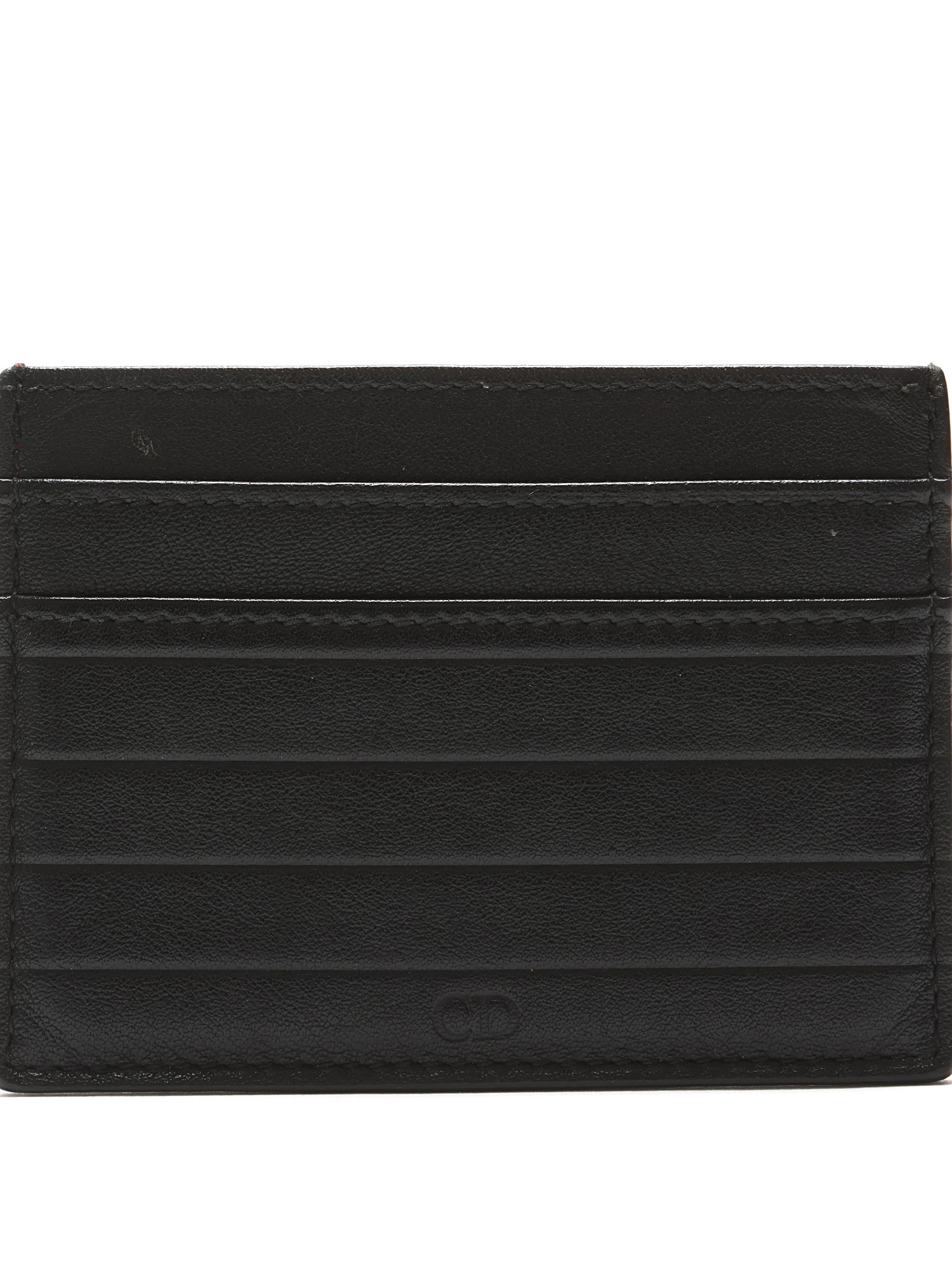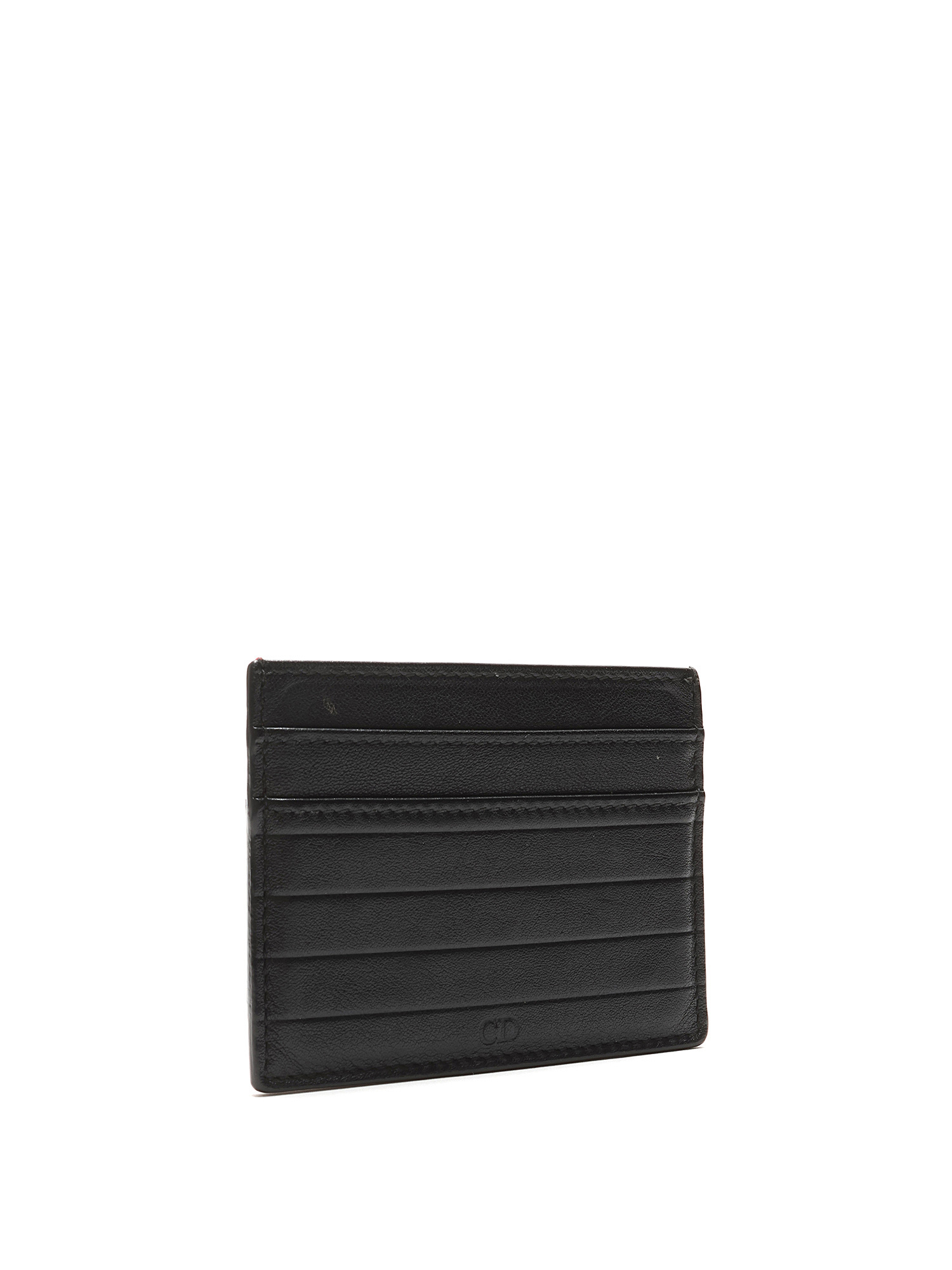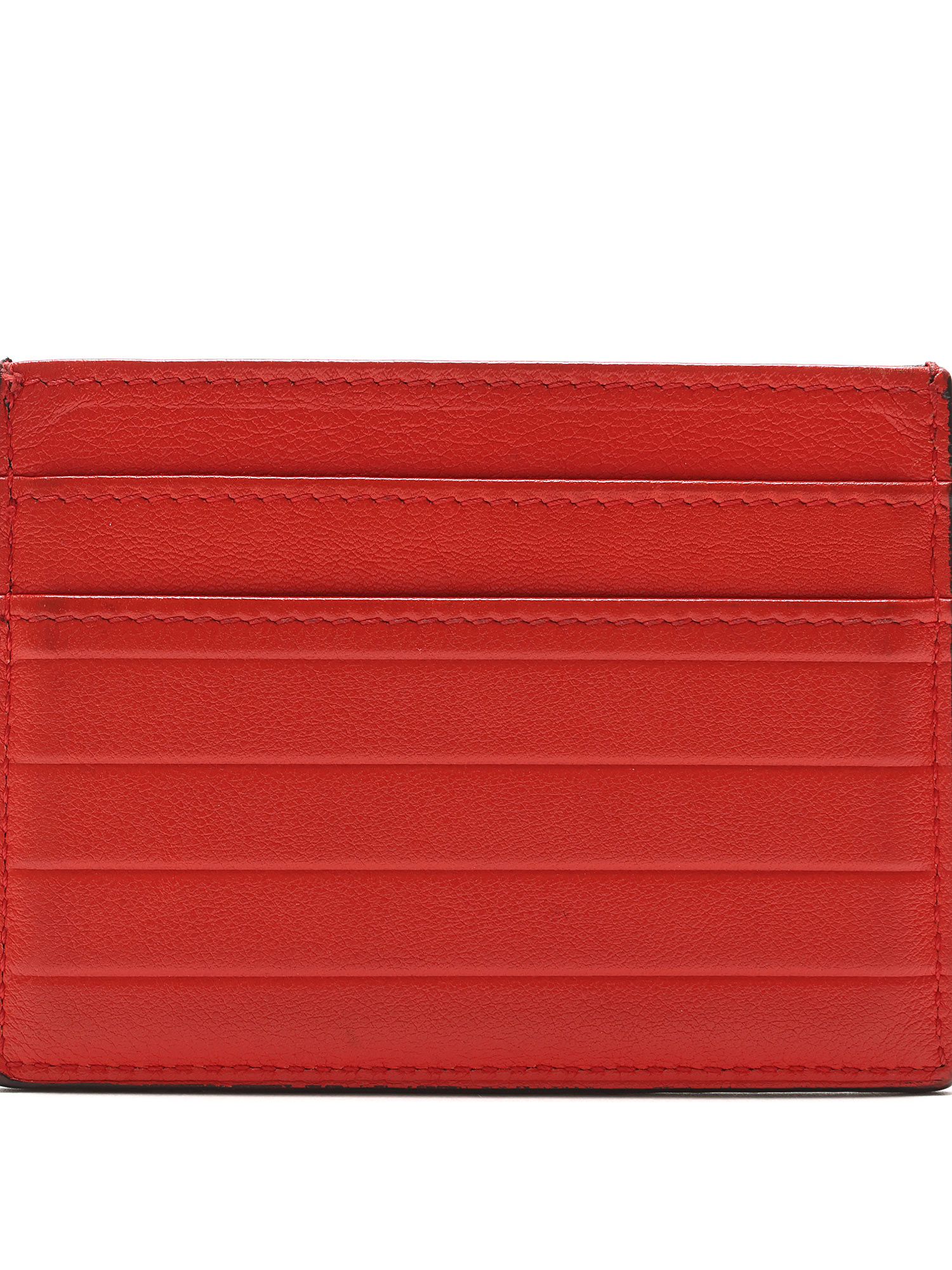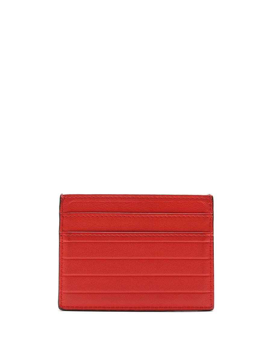 Grained leather cardholder in black and red. Compact size with a sleek design.