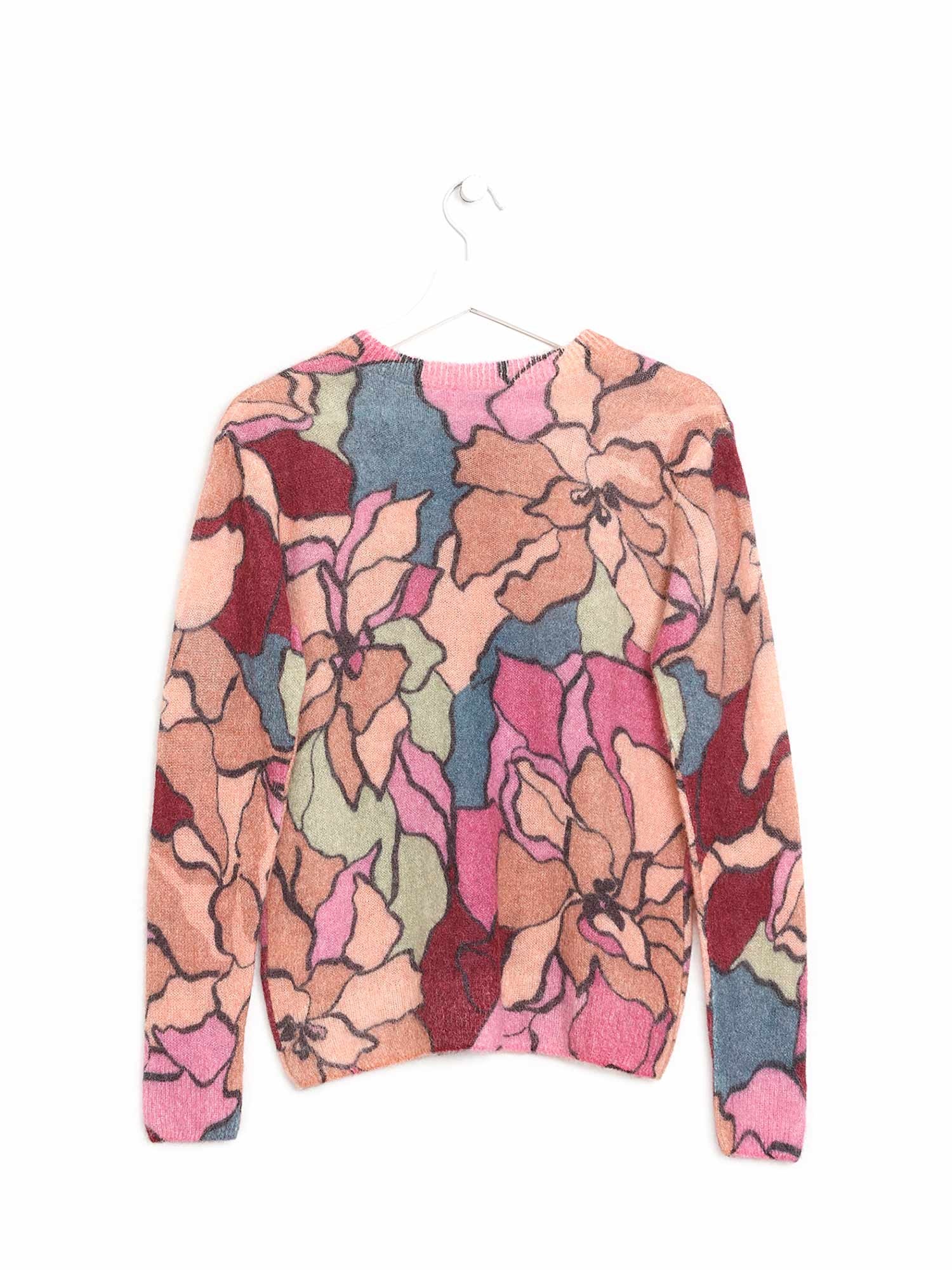 Floral mohair blend sweater in vibrant multicolor print. Long sleeves with ribbed cuffs and hem. Oversized silhouette.
