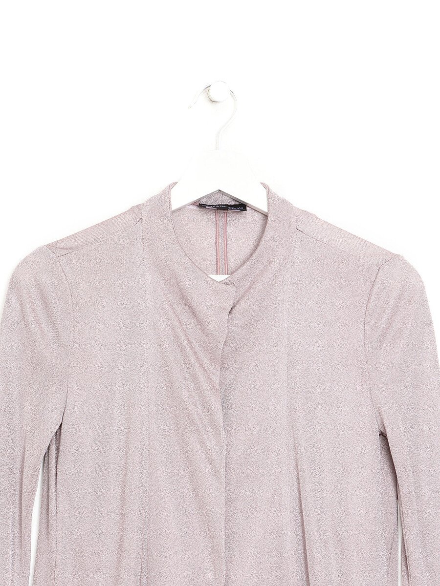 Collarless long sleeve shirt in faded pink. Press-stud button closure. Minimalist design.