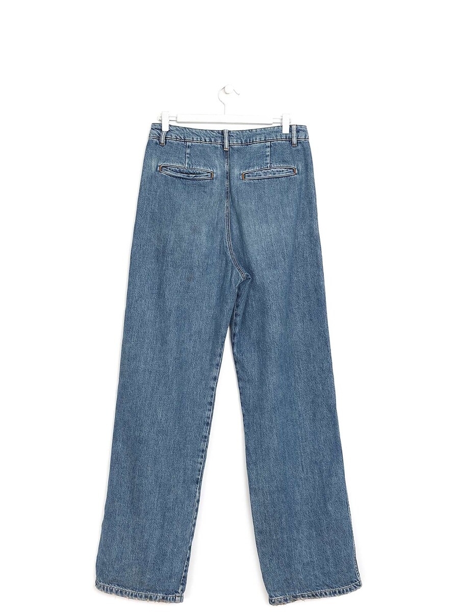 Relaxed-fit denim jeans in blue. Button closure at front. Four-pocket styling.