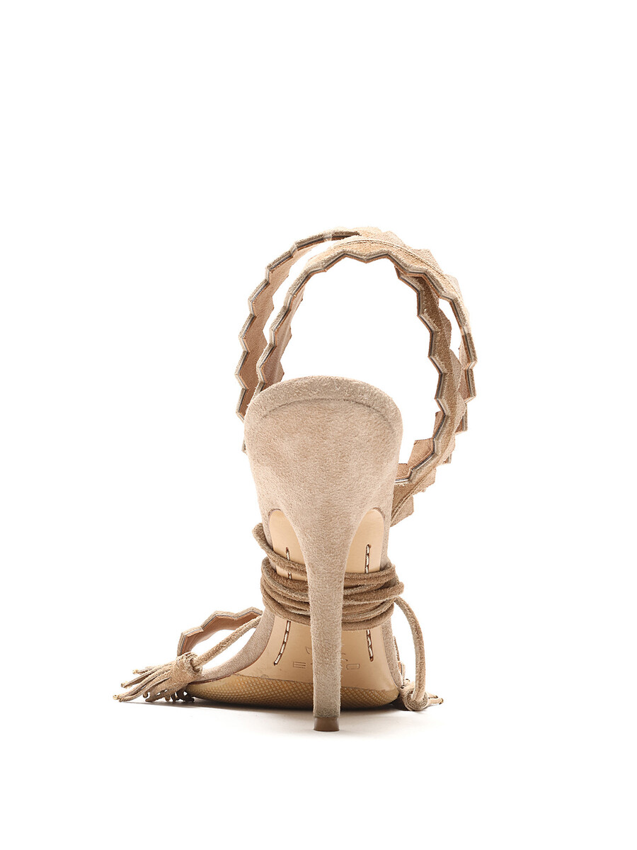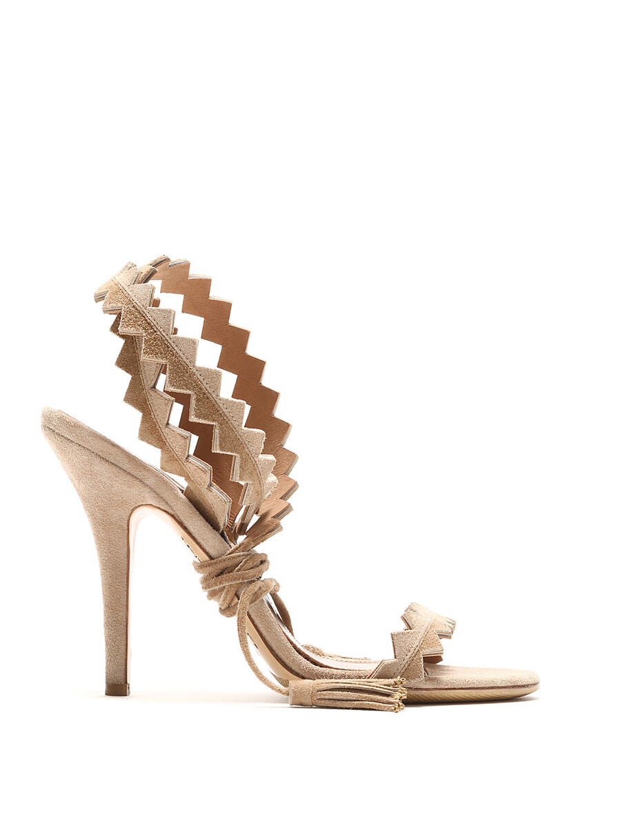 Suede sandals with zigzag straps and tassels. Lace-up closure. Open toe design. Leather sole.