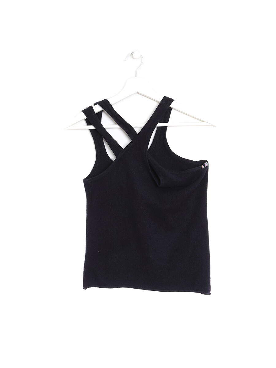 Sleeveless tank top with racerback neckline in midnight blue. Made of cashmere. With dust bag.