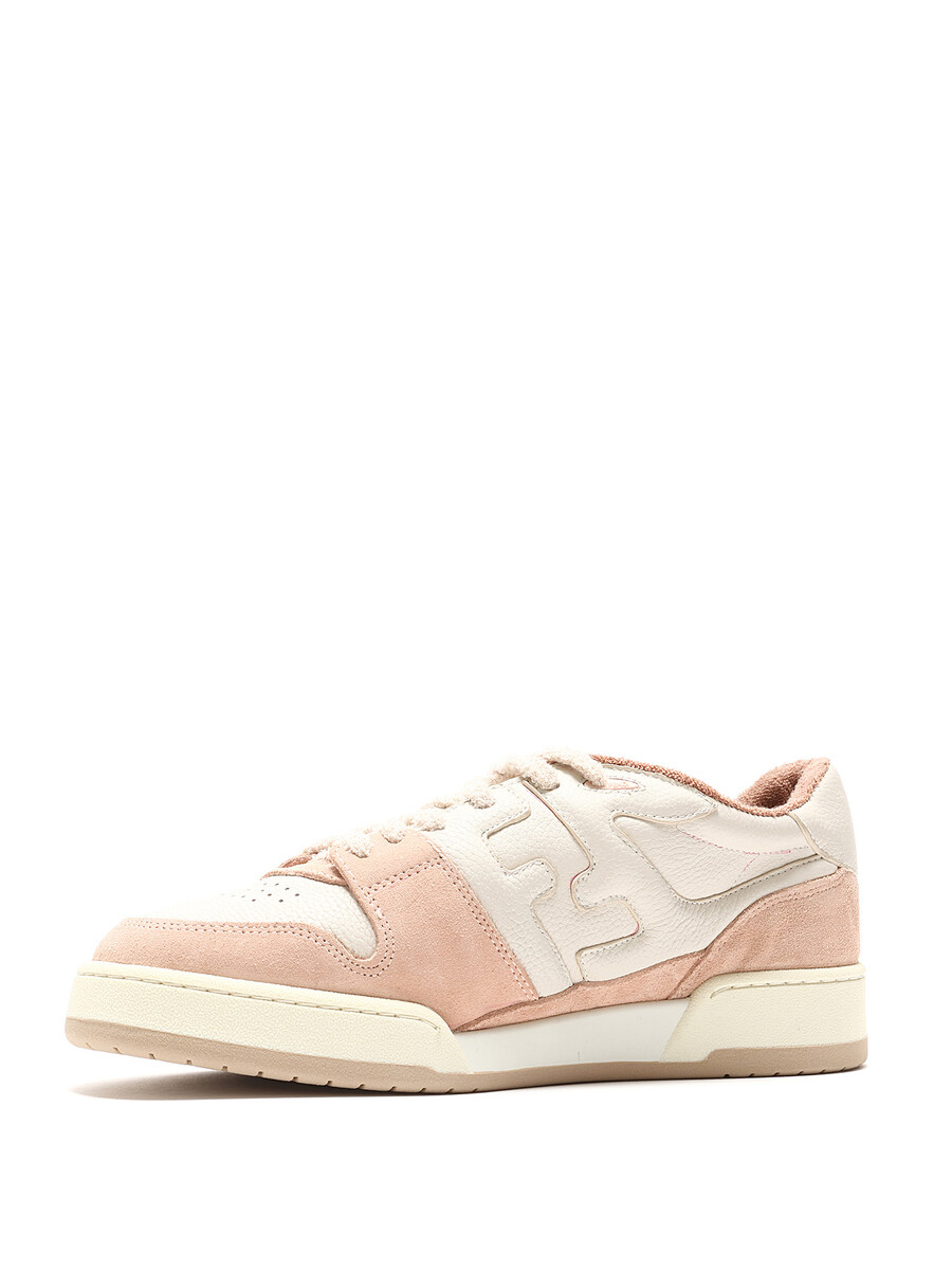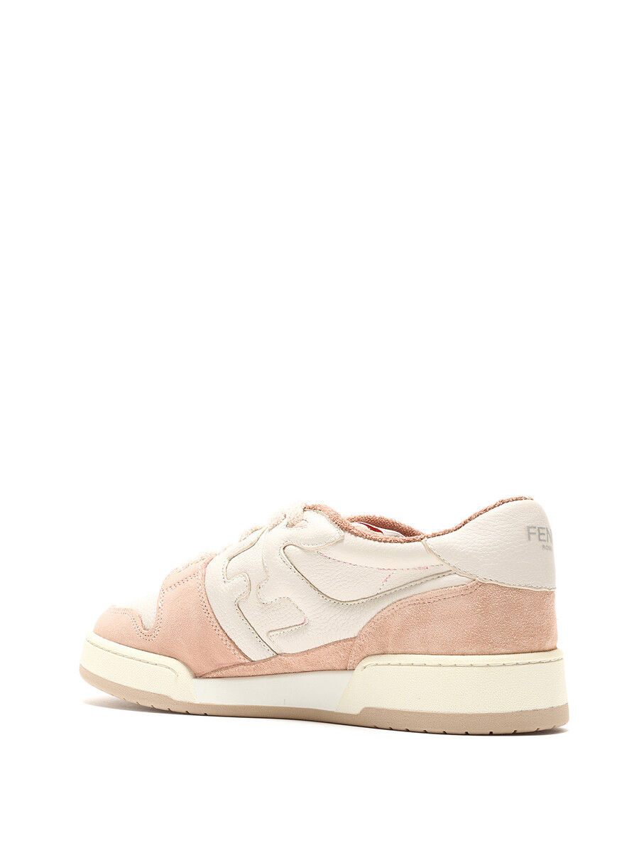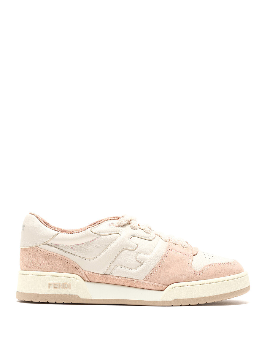 Perforated design sneakers in beige and cream. Lace-up closure. Round toe style. Rubber sole. Fendi branding. Comes with box.