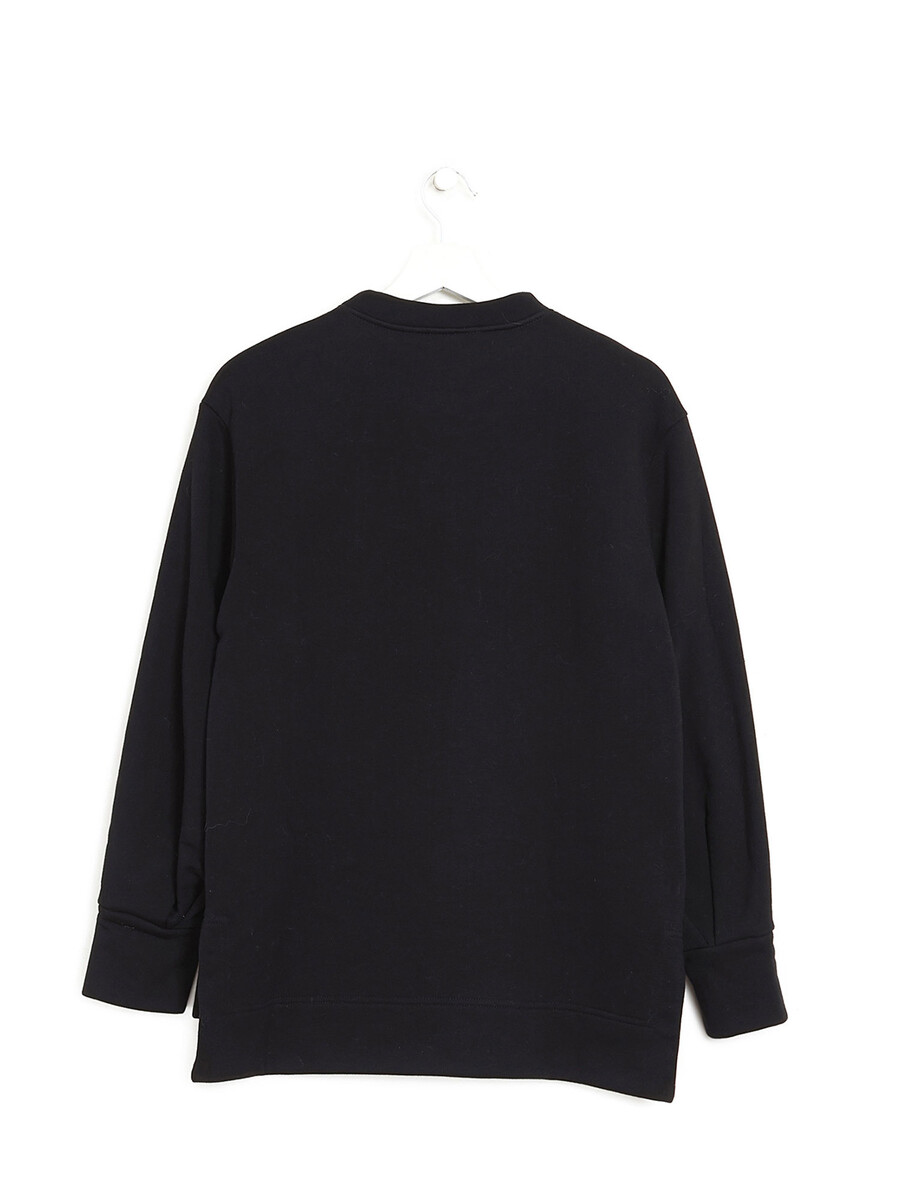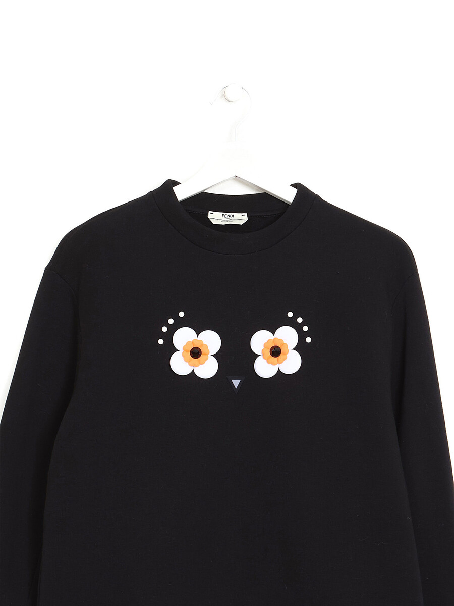 Black floral embroidered sweater with a round neckline. Soft and comfortable feel. Perfect for layering or as a standout piece.