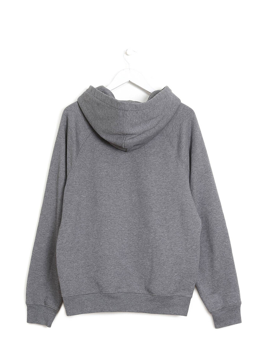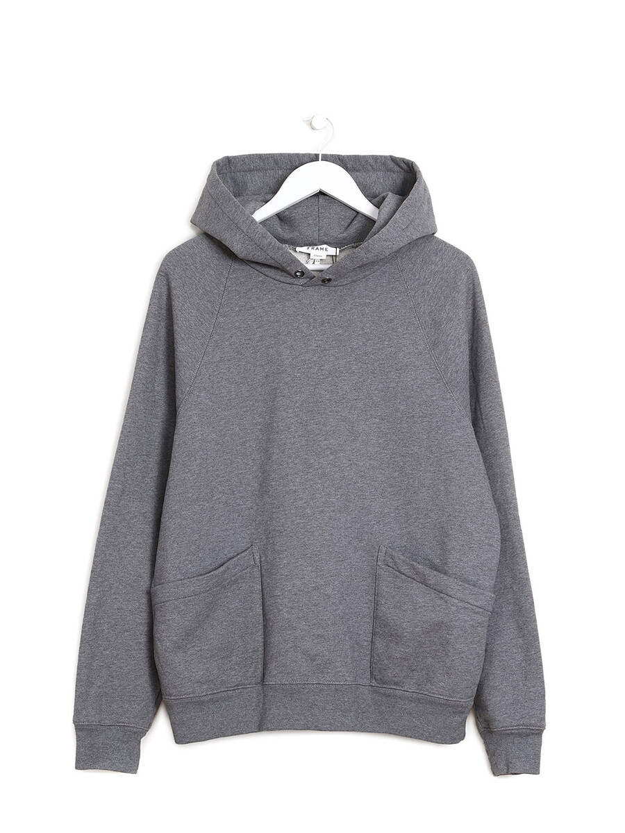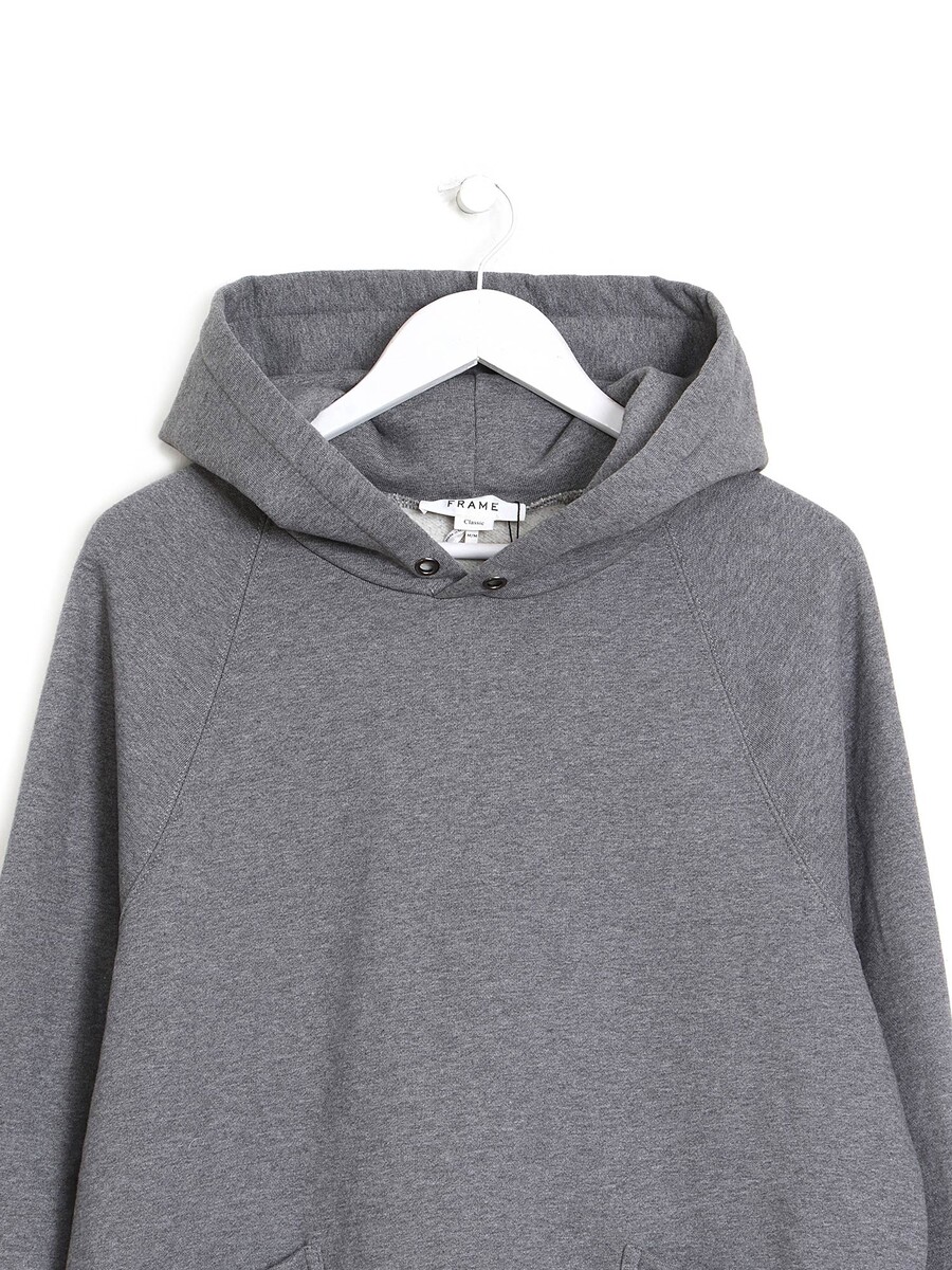 Long sleeve hoodie with a solid design in grey. Pullover style with drawstring hood. Kangaroo pocket.