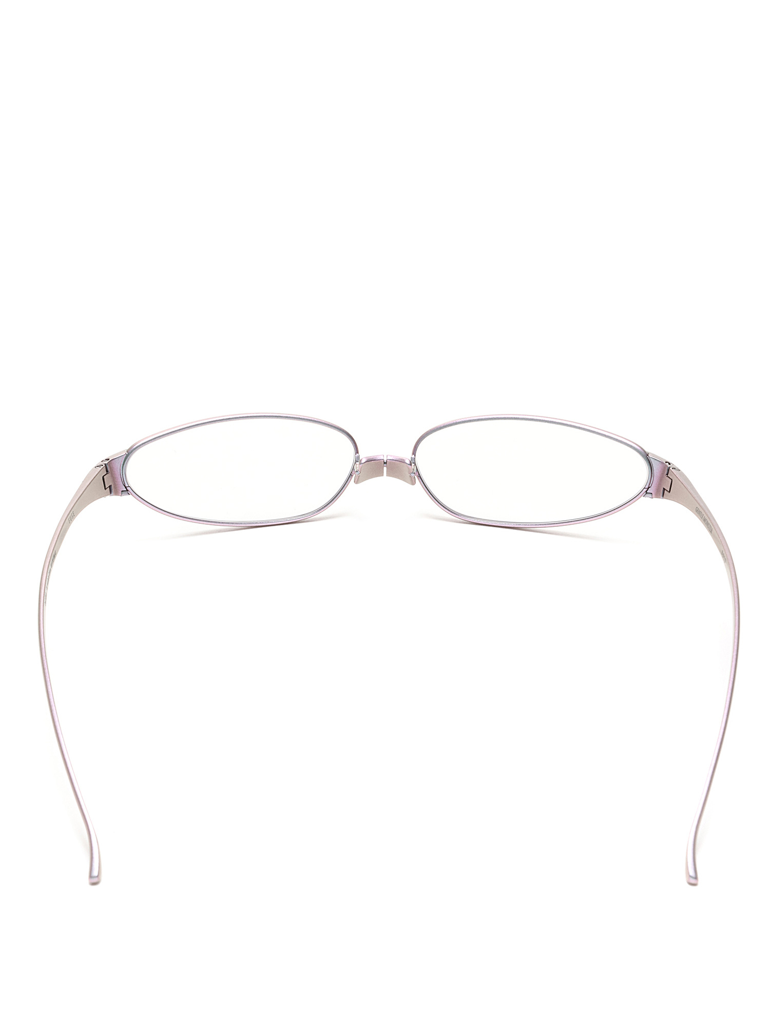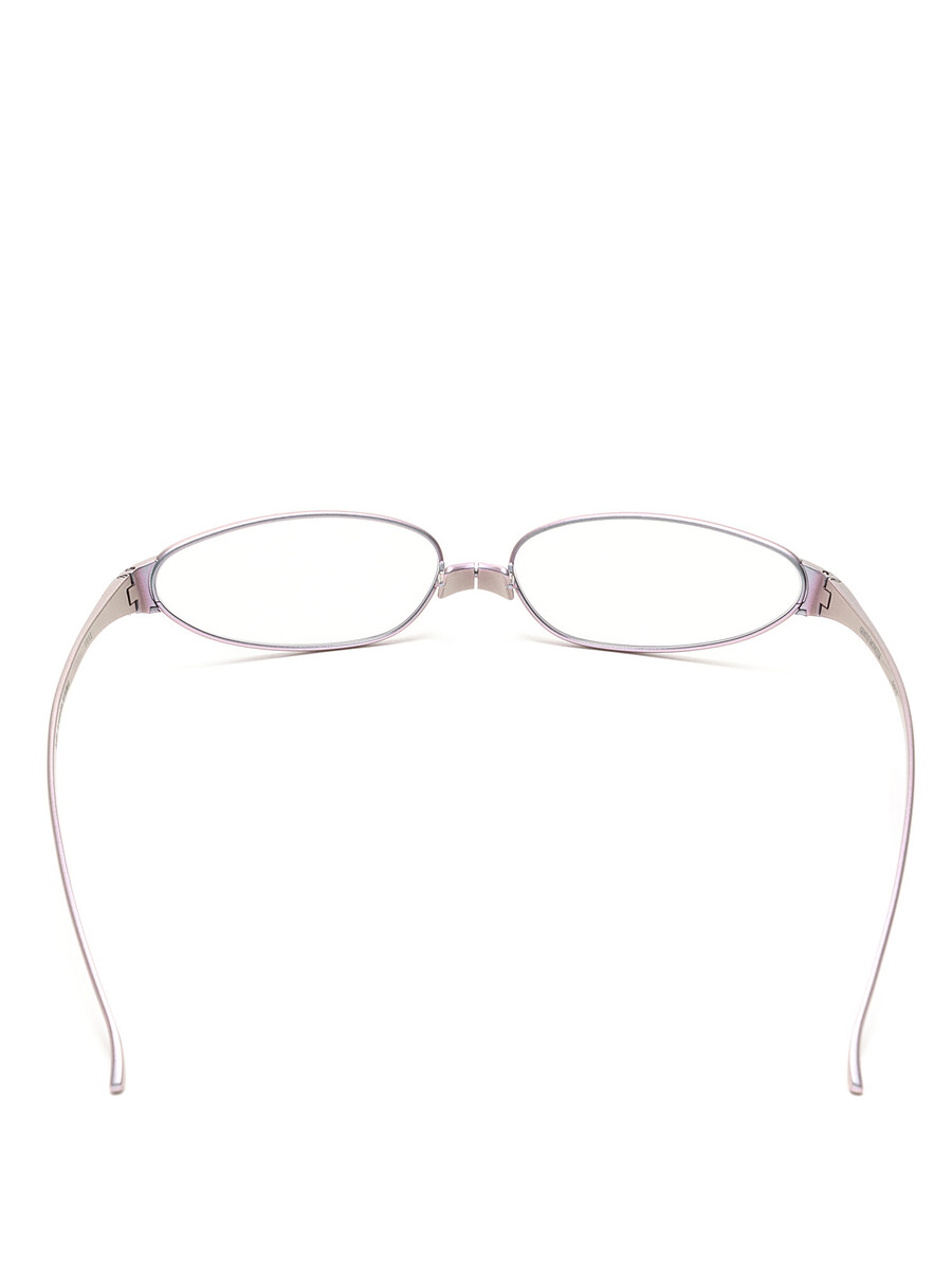 Silver metal frame glasses with a unique nose bridge design. Lenses block blue light and 99.9% UV rays.