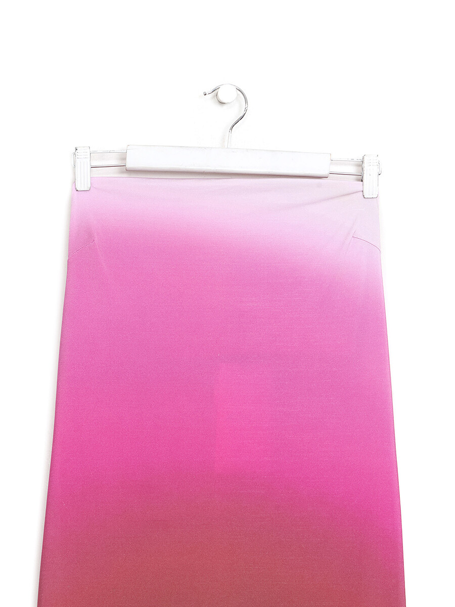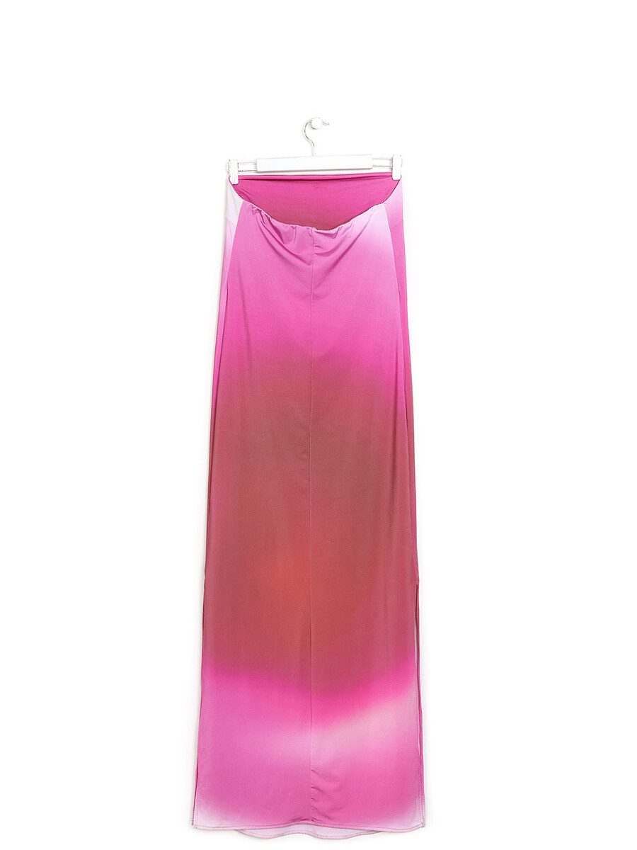 Strapless midi dress featuring a gradient pattern in shades of pink.