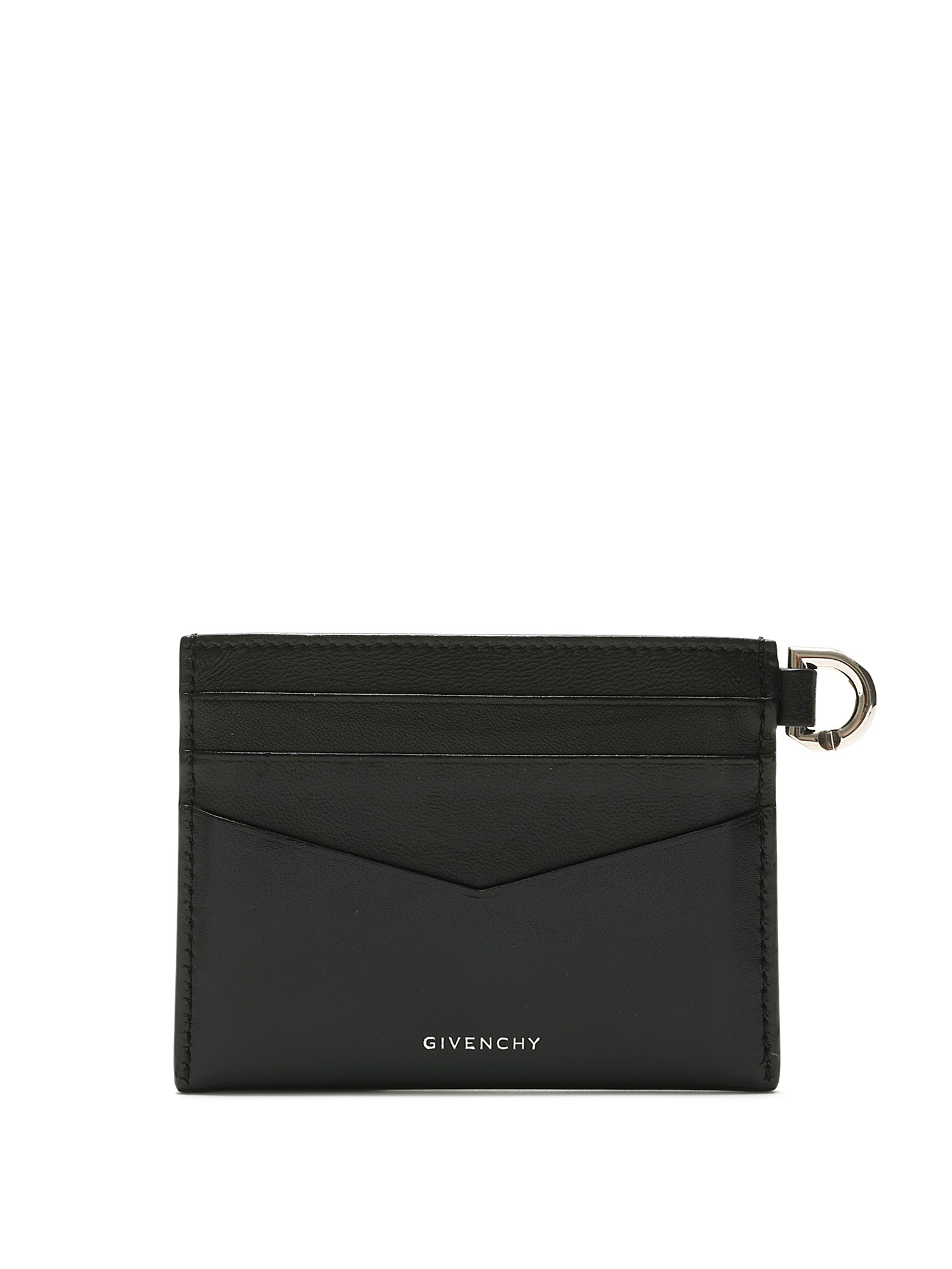 Grained leather card case in black. Zip closure. Logo plaque. With box.