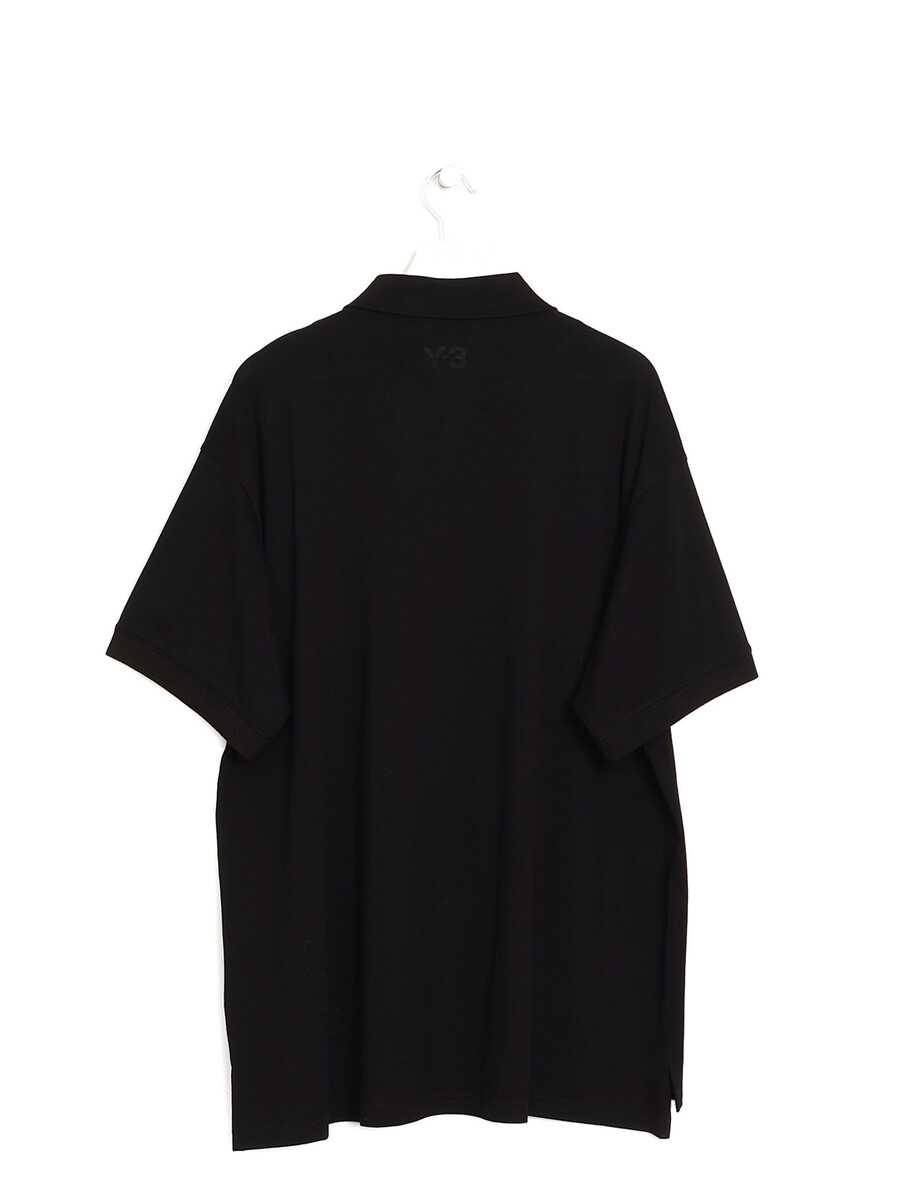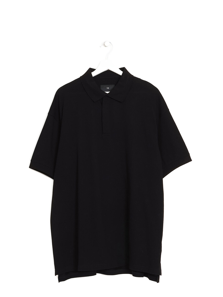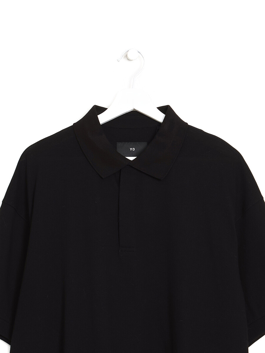 Short sleeve polo shirt in black. Shirt collar with two-button placket. Monochrome logo at the nape of the neck.