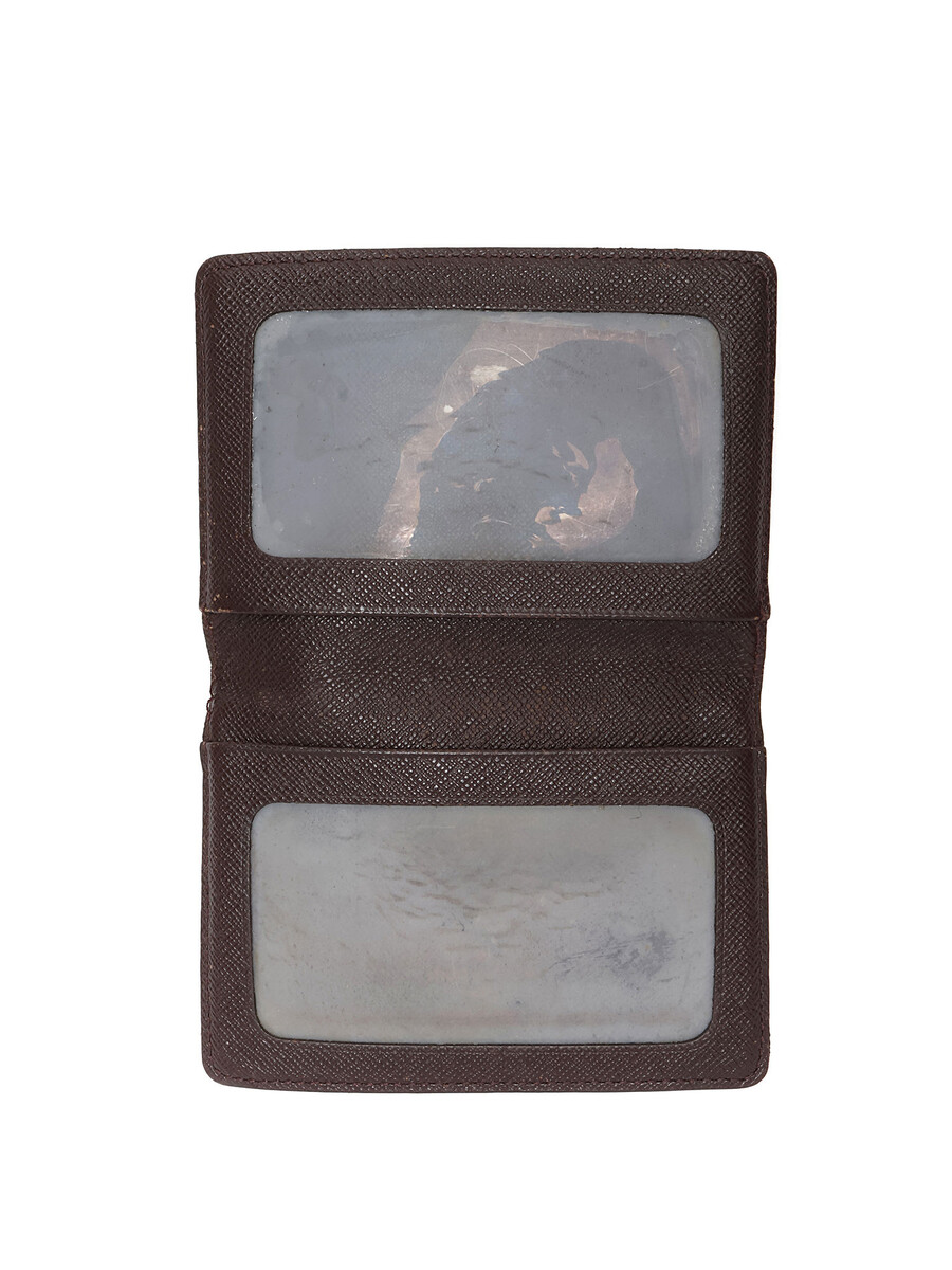 Coated canvas card holder featuring the classic Damier Ebene pattern in brown and dark brown tones. Tonal stitching. Includes dust bag.