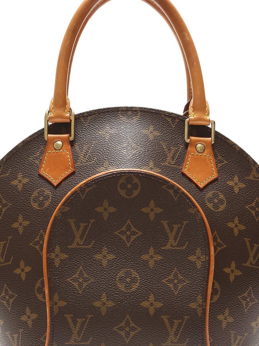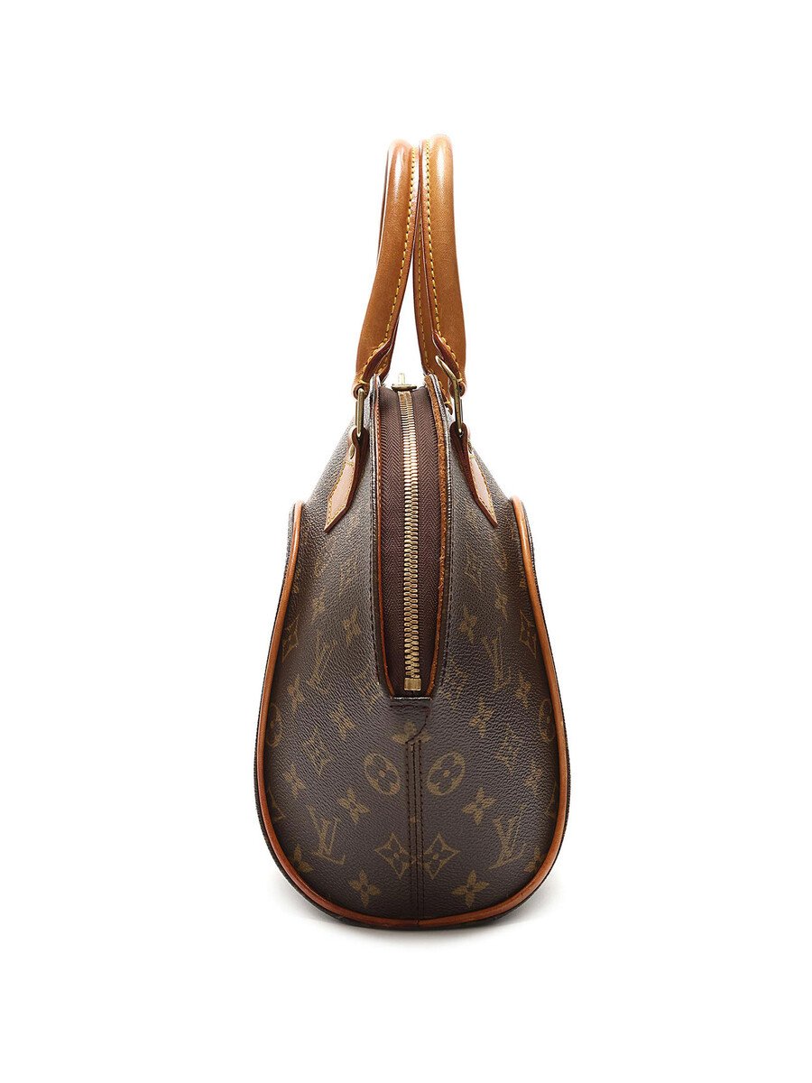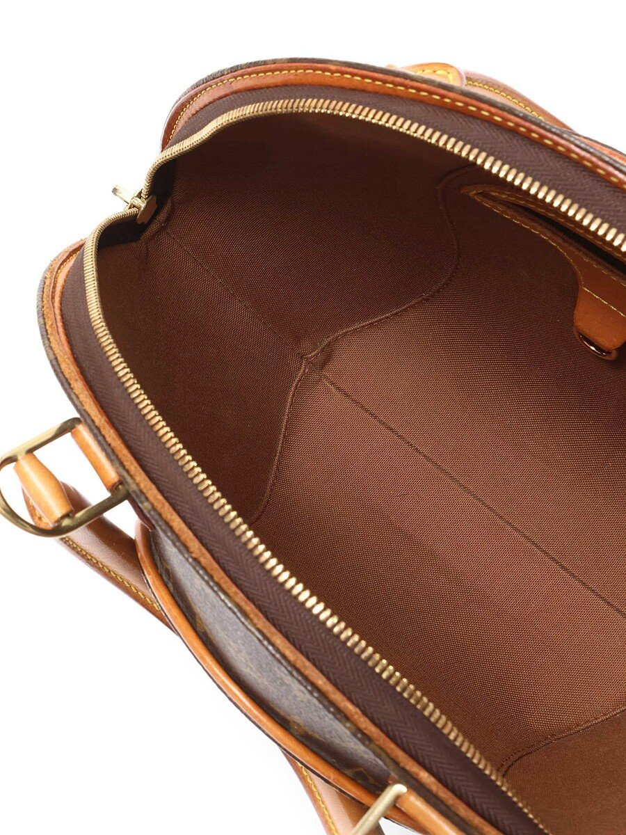 Monogram canvas handbag with a rounded silhouette. Features a zipper closure, rolled leather handles, leather trimmings, and gold-tone hardware.