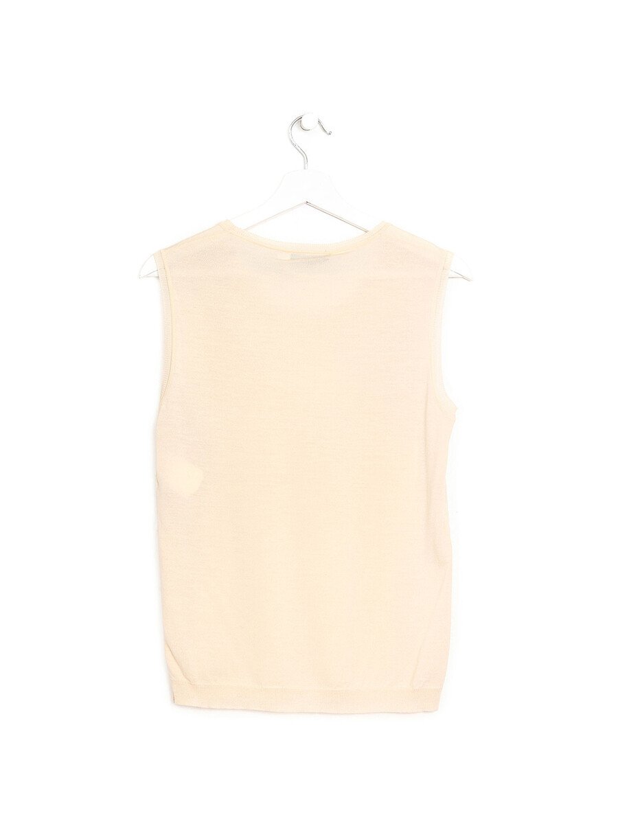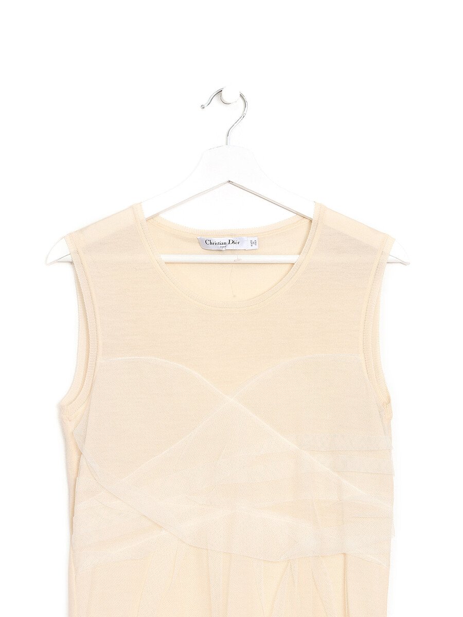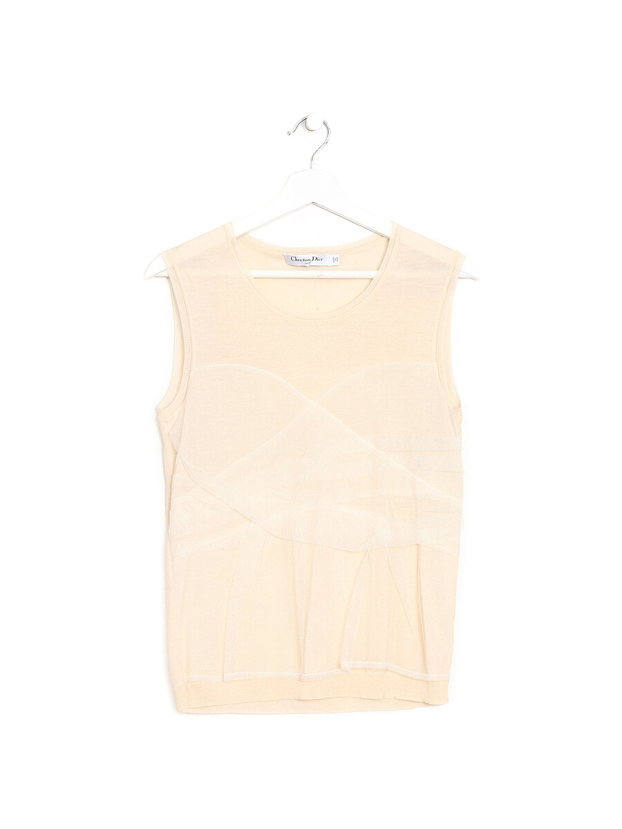 Sleeveless wool top in beige featuring a tulle panel at the front.