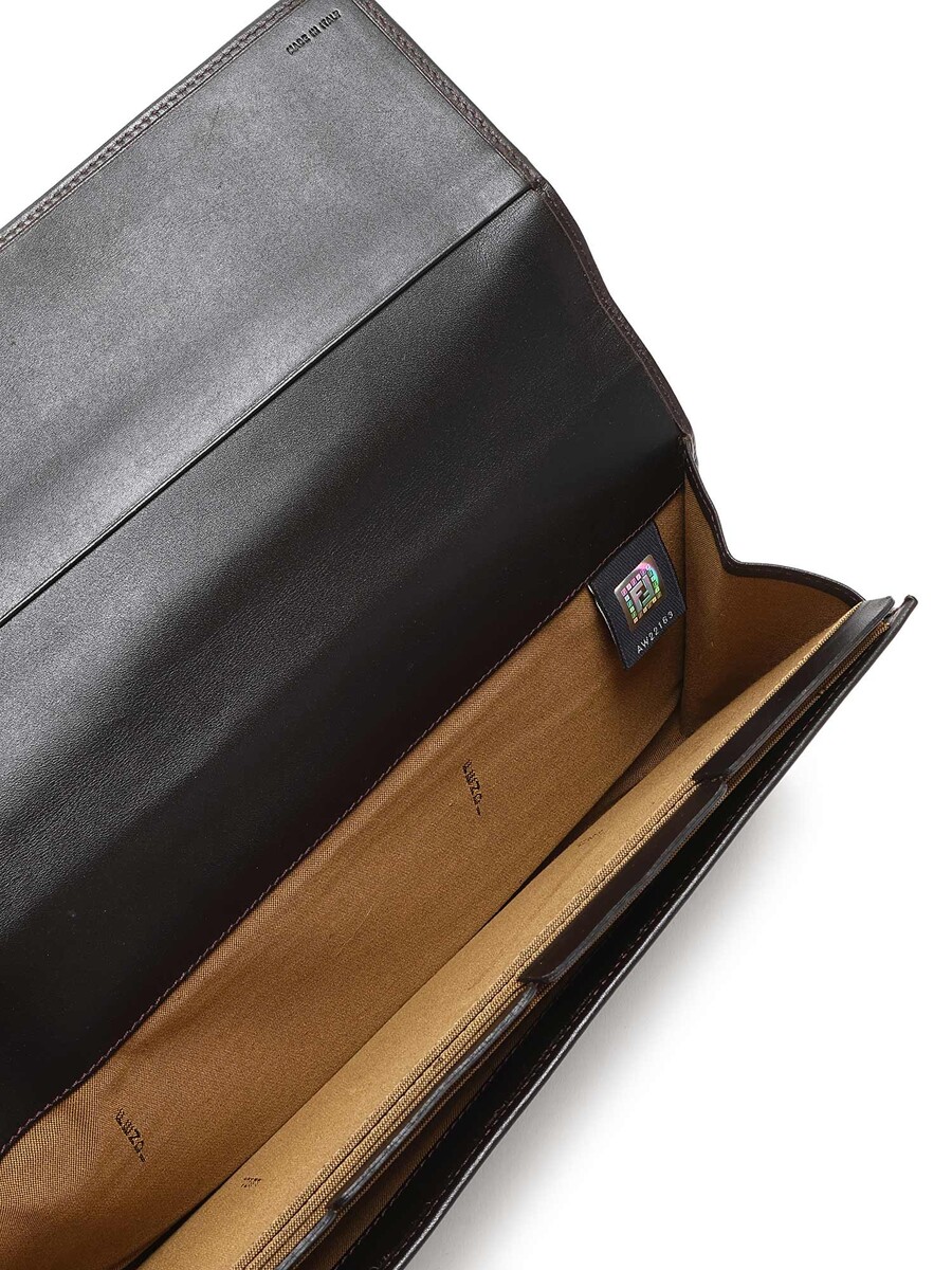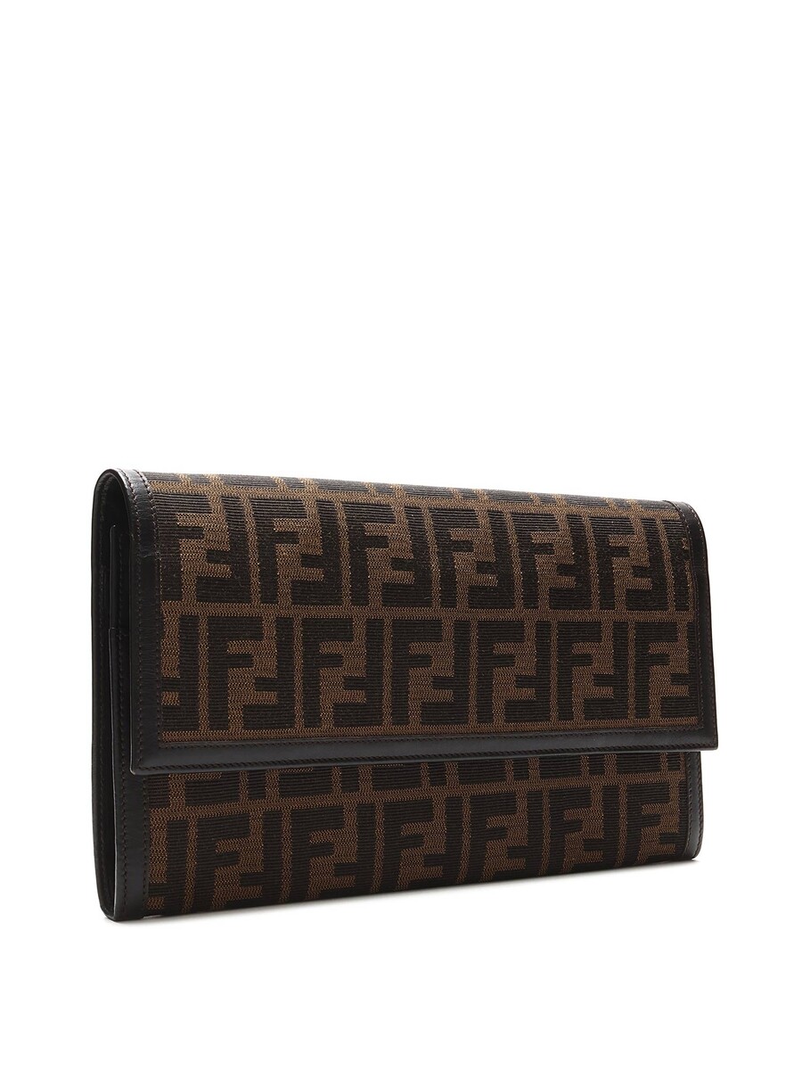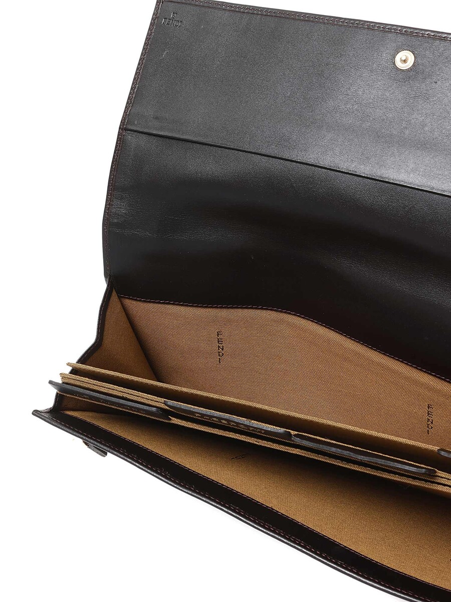 Zucca monogram canvas and leather wallet/document holder in brown and black. Snap closure. Gold-tone hardware. With dust bag.