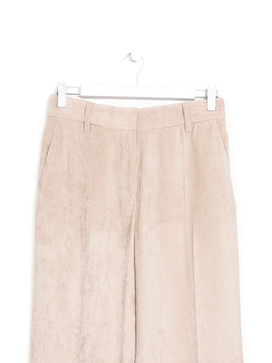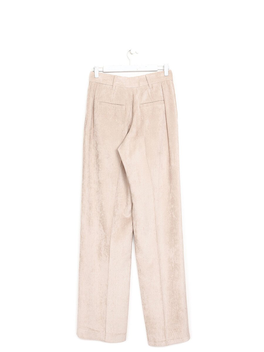 Corduroy trousers in beige. Featuring zip closure and four pockets.