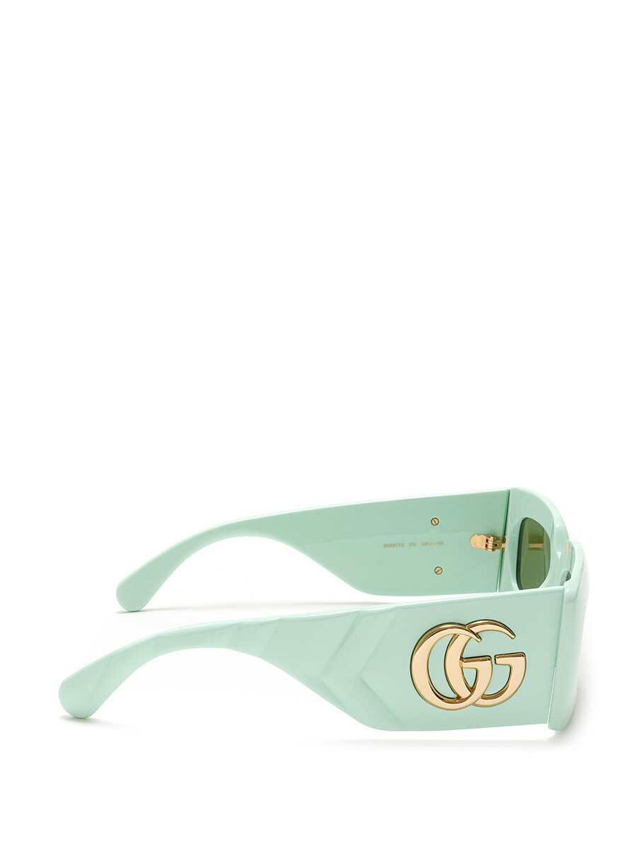 Mint acetate sunglasses featuring gold GG logo at temples. Comes with a dust bag.