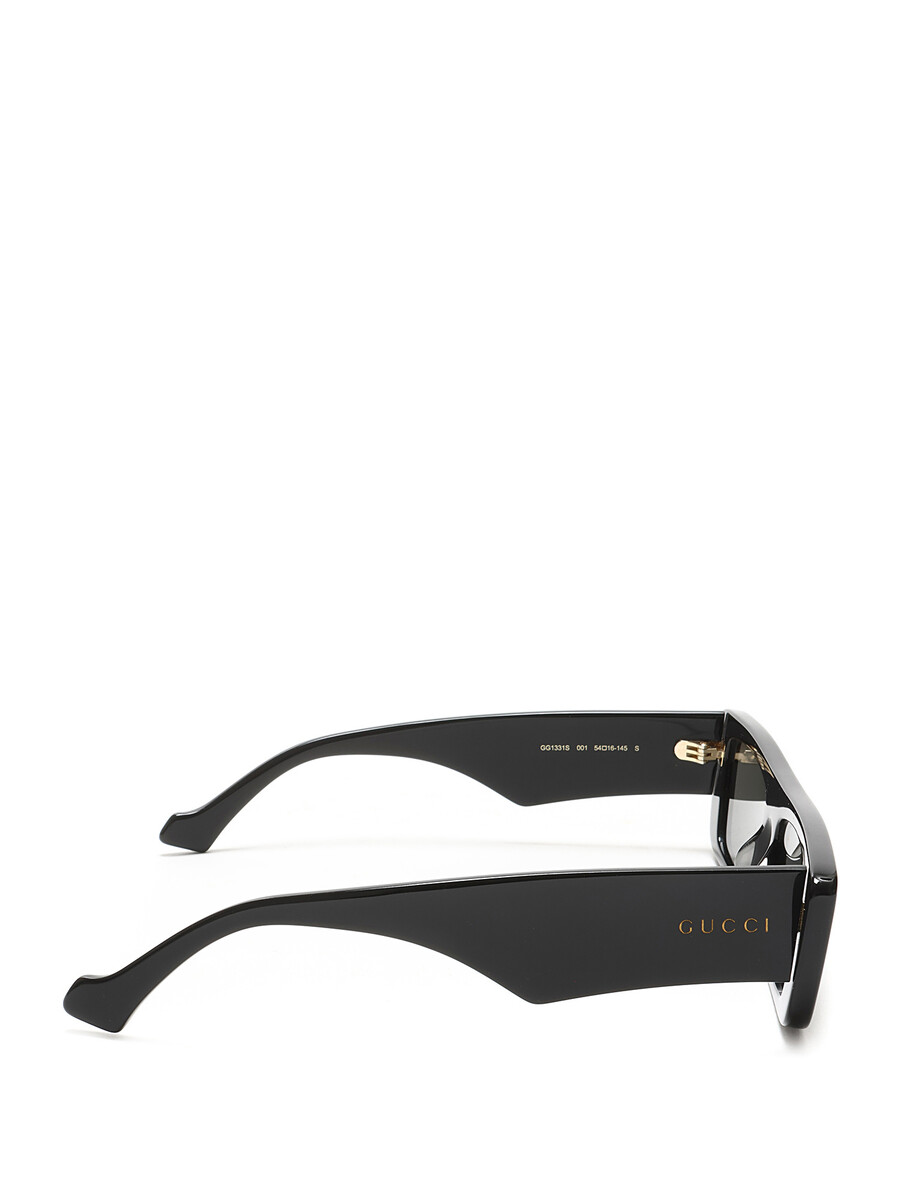 Rectangular acetate sunglasses in black. Gold-tone logo at temples. Comes with a protective case.
