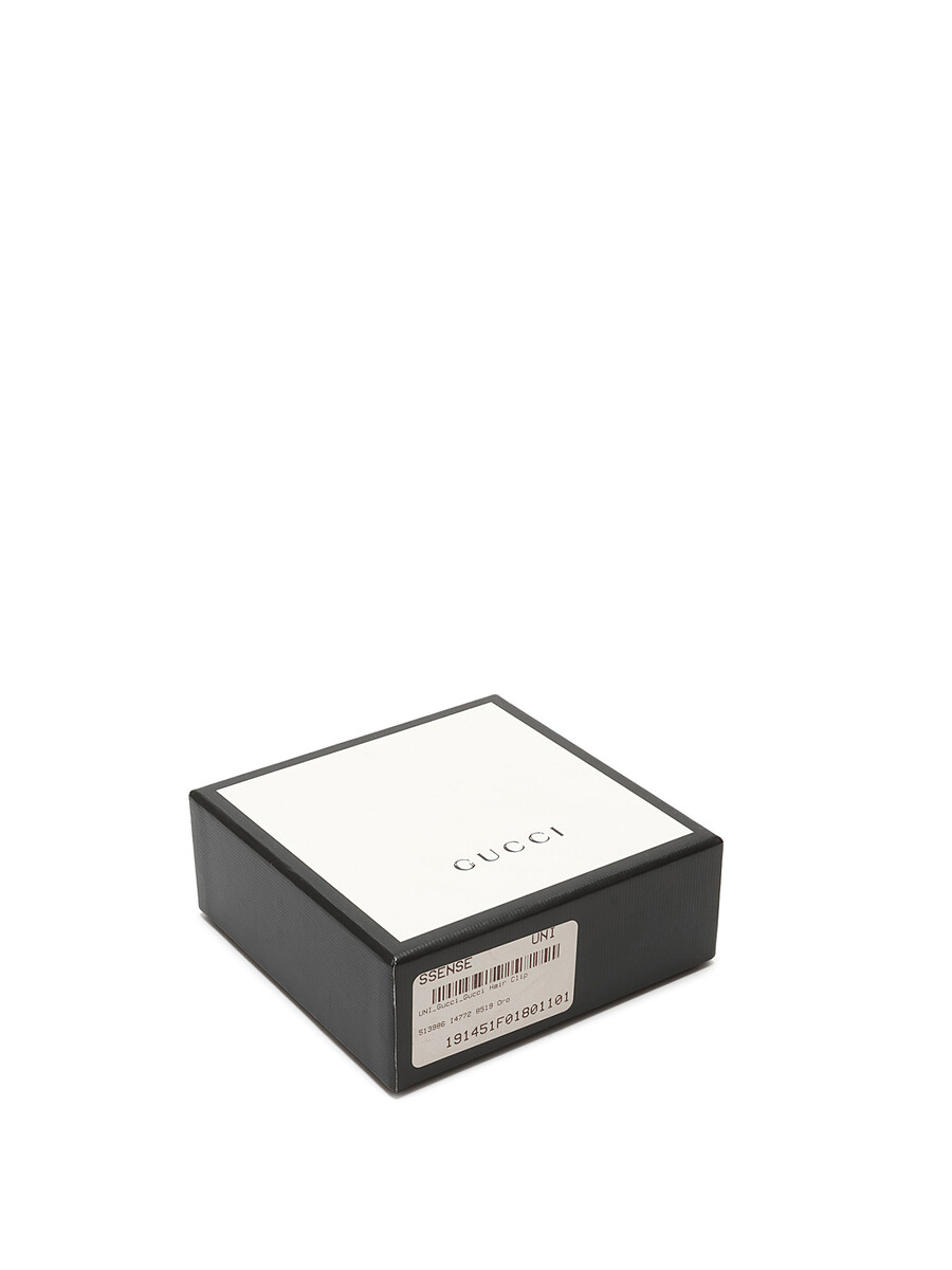 Black acetate hair clip adorned with a crystal logo. Gold-tone clip.