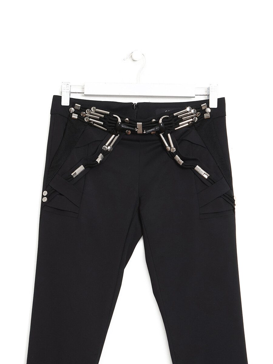 Slim leg pants in black featuring signature horsebit hardware. Concealed closure. Sleek and elegant silhouette.