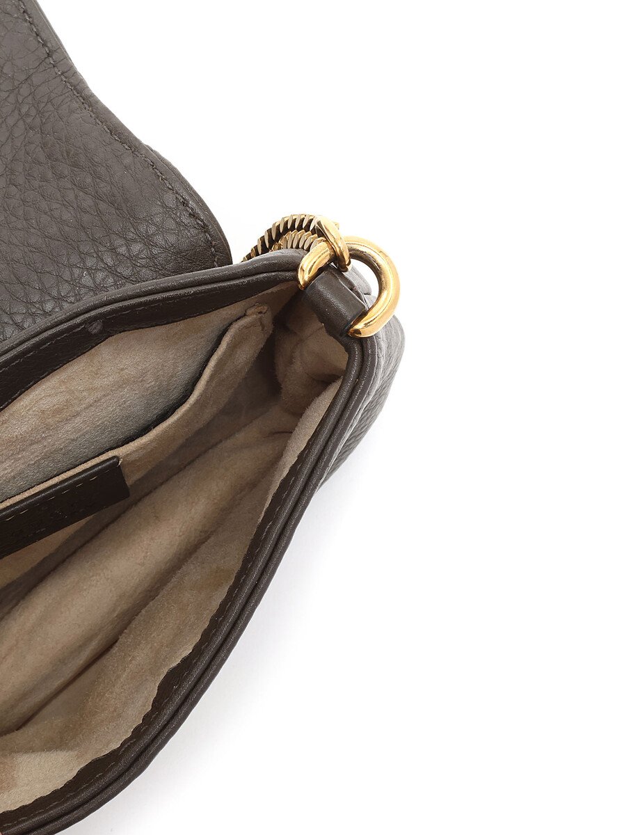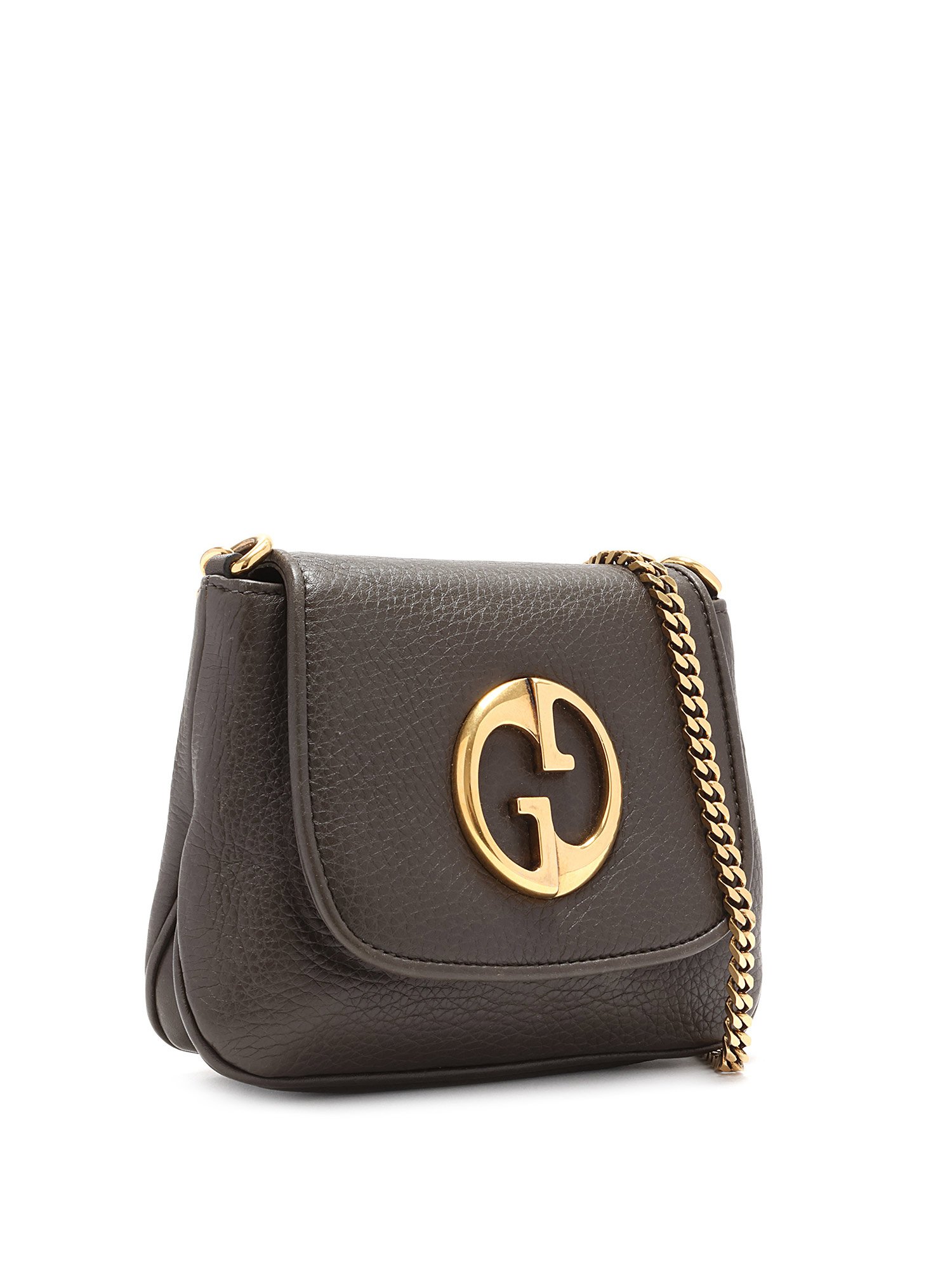 Grained leather shoulder bag in black. Features the iconic GG logo. Magnetic snap closure. Gold-tone chain strap. Gold hardware.