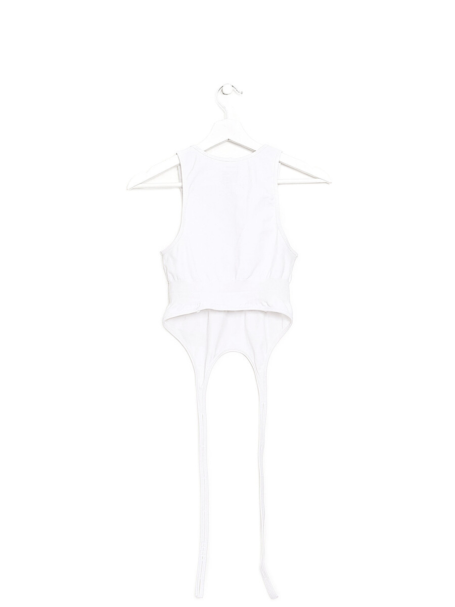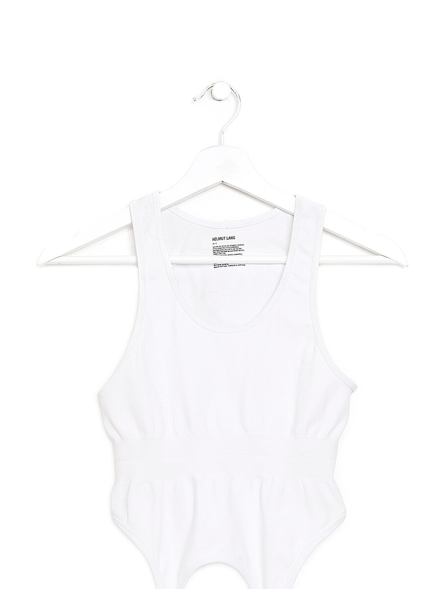 Sleeveless stretch tank top in white. Lightweight and form-fitting.