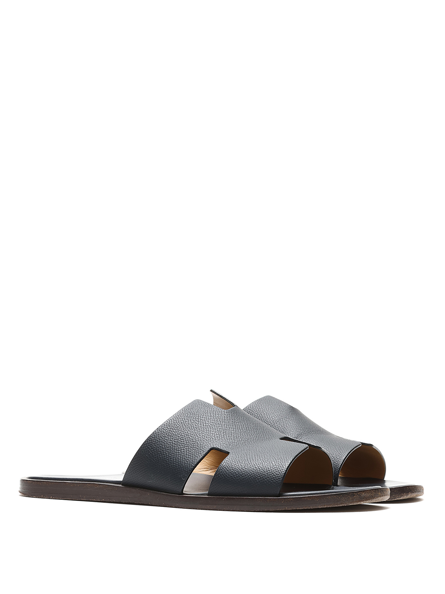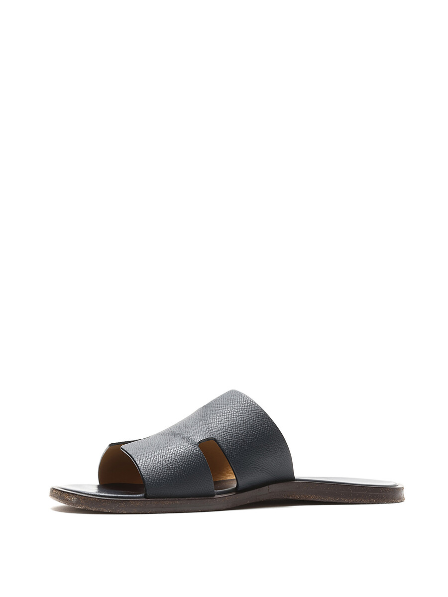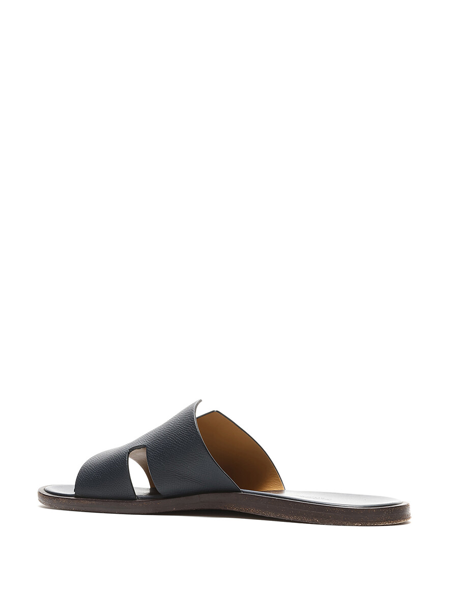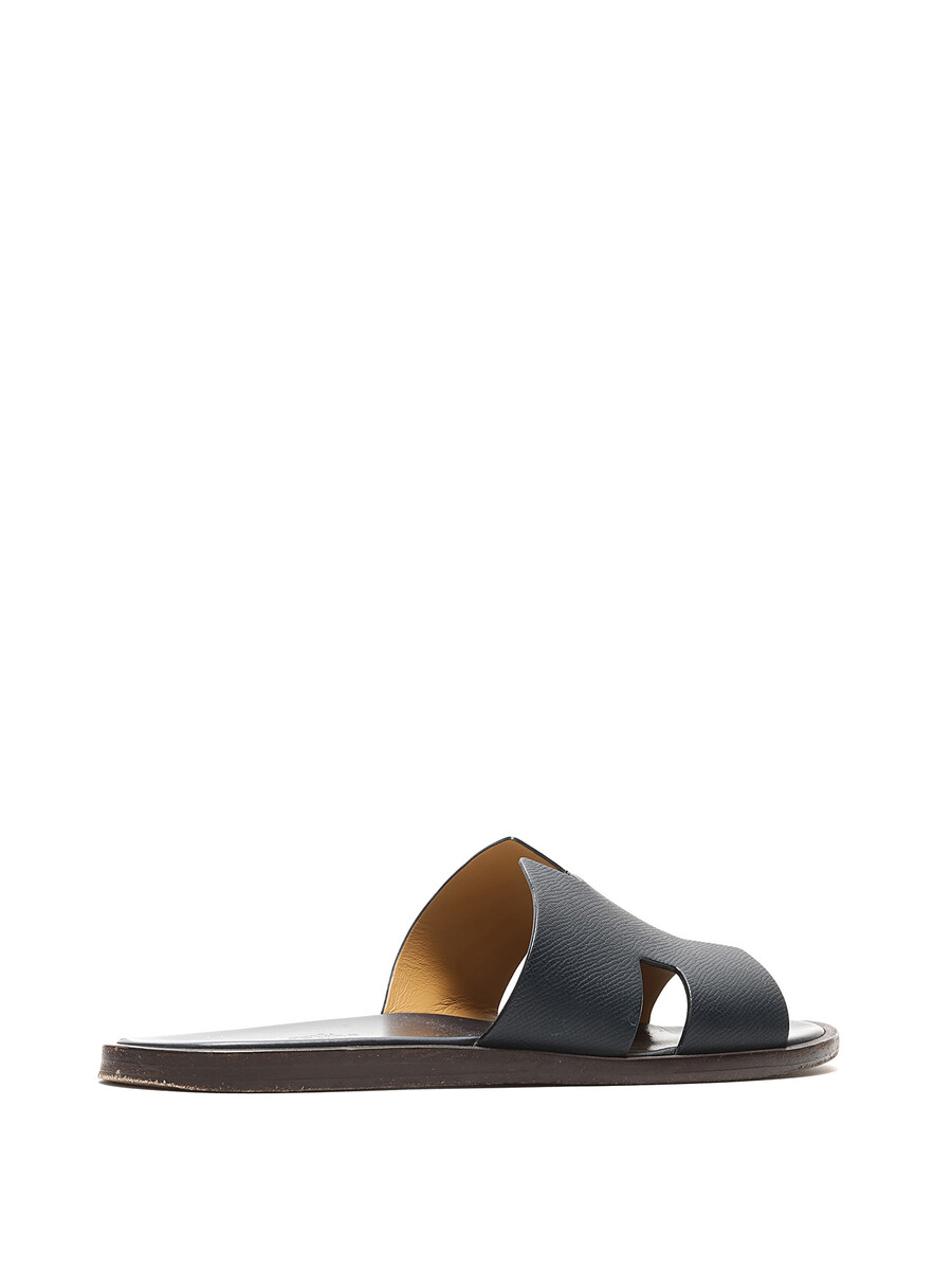 Leather slip-on sandals featuring logo motif. Leather sole.