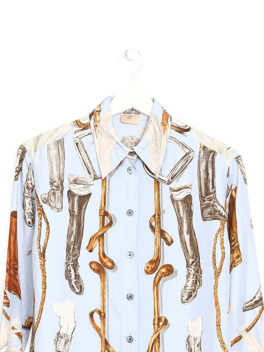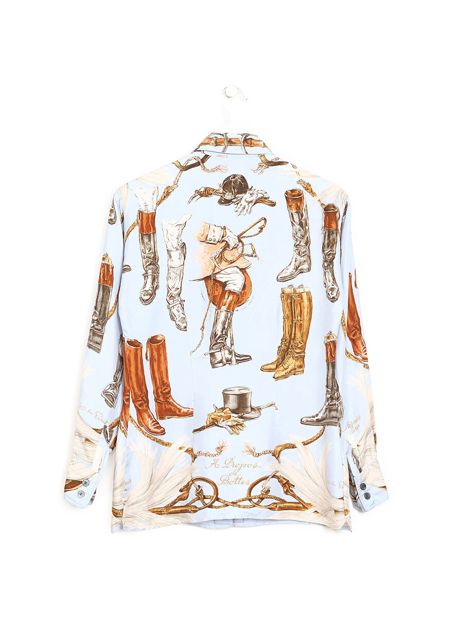 Graphic print silk shirt in multicolour. Classic collar.