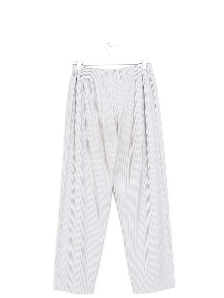 Pleated trousers in grey, showcasing signature Homme Plisse texture. Elastic waistband. Relaxed fit.