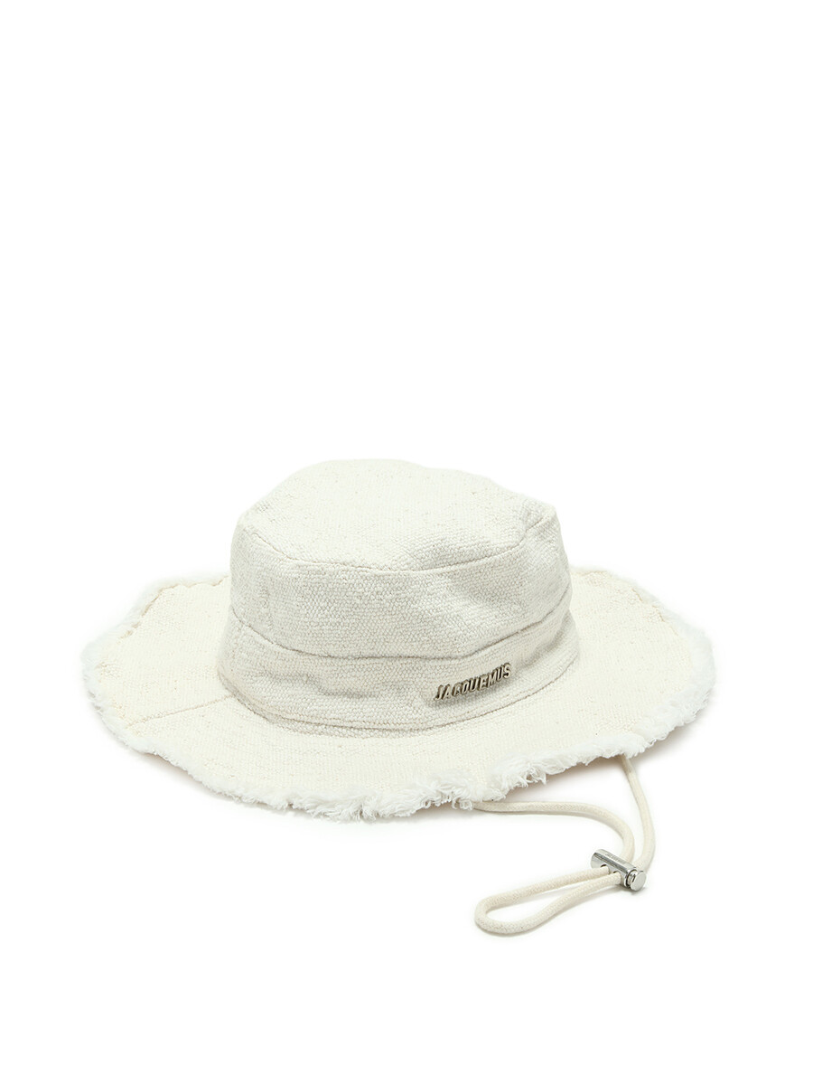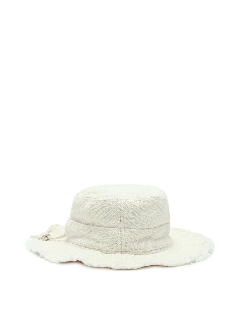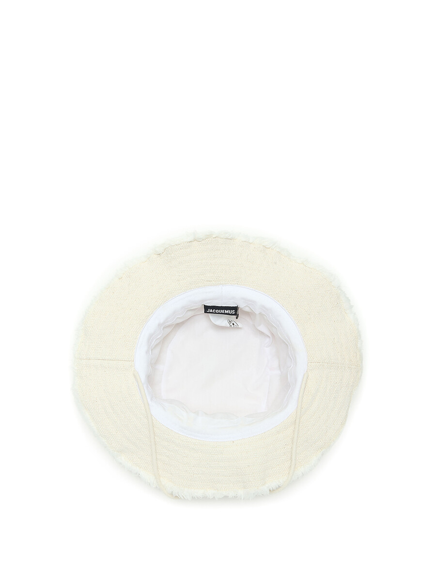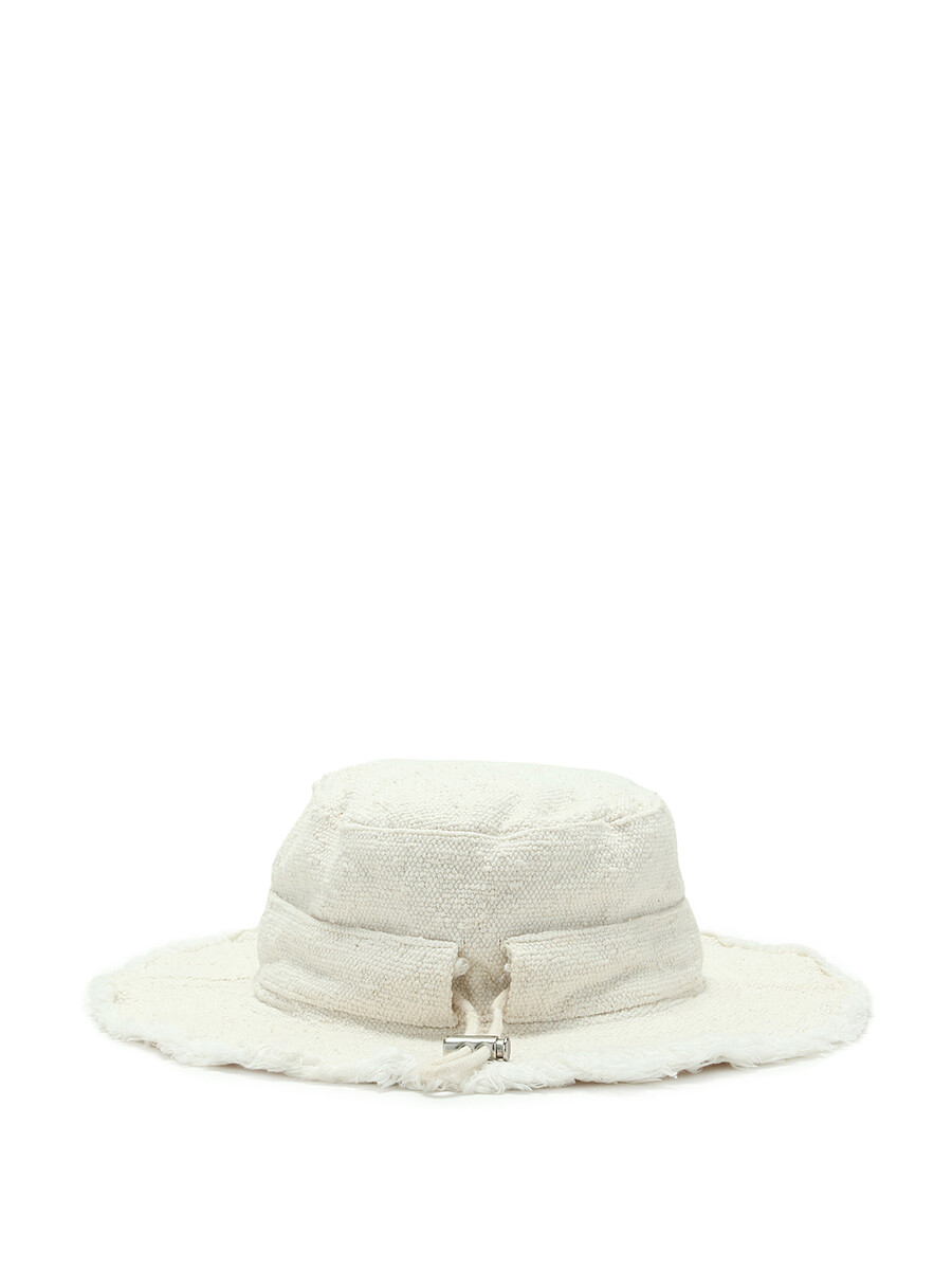 Cotton canvas frayed edge bucket hat in off-white.