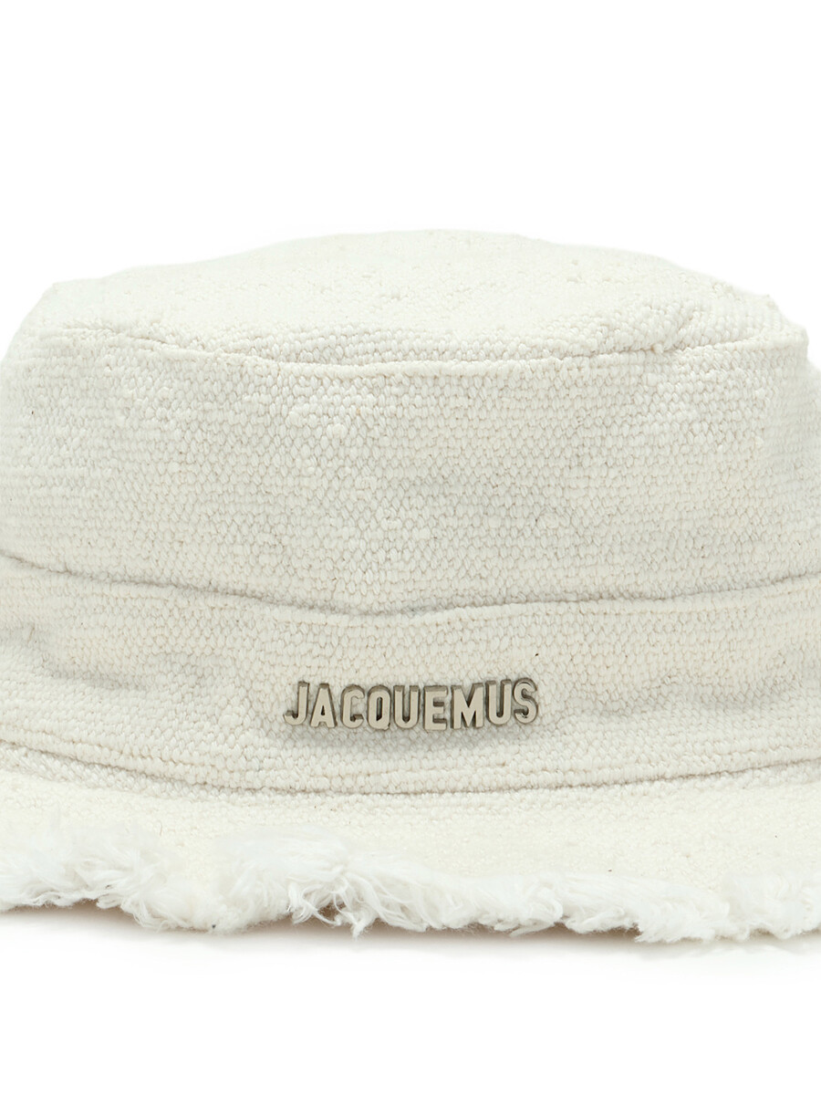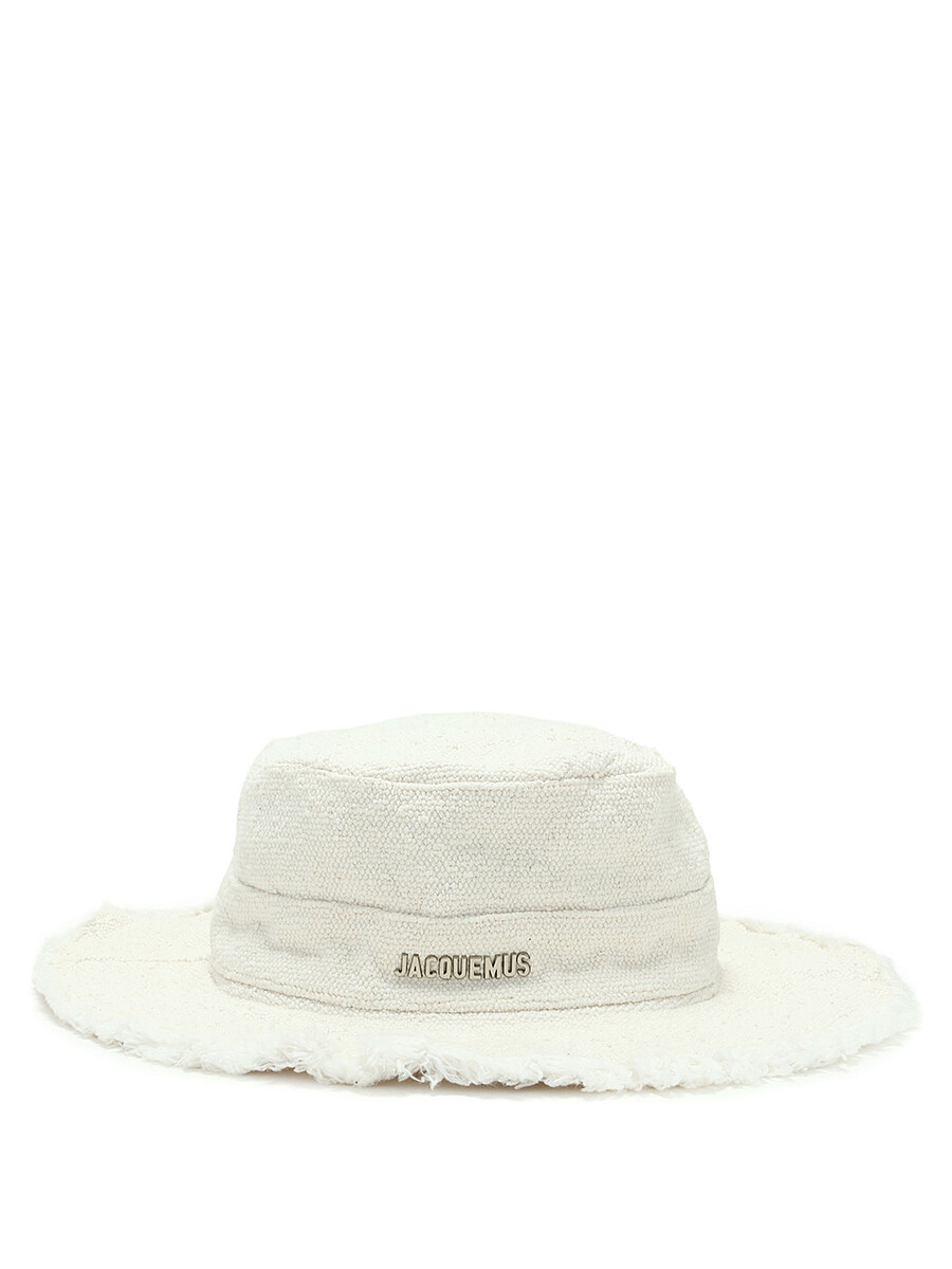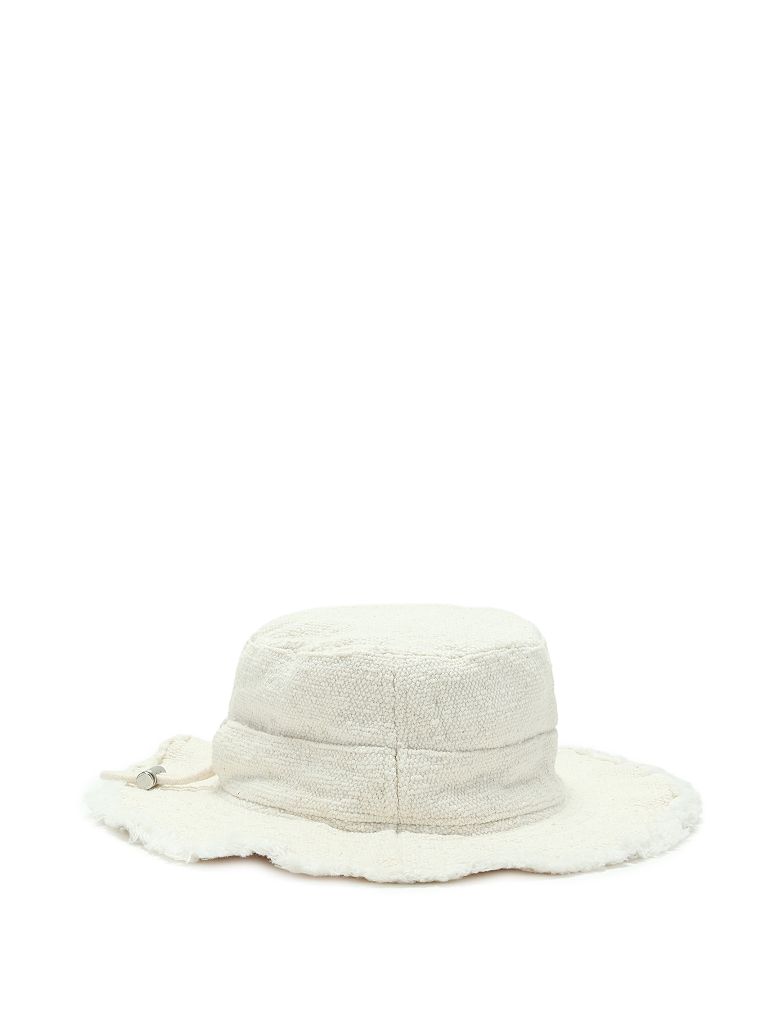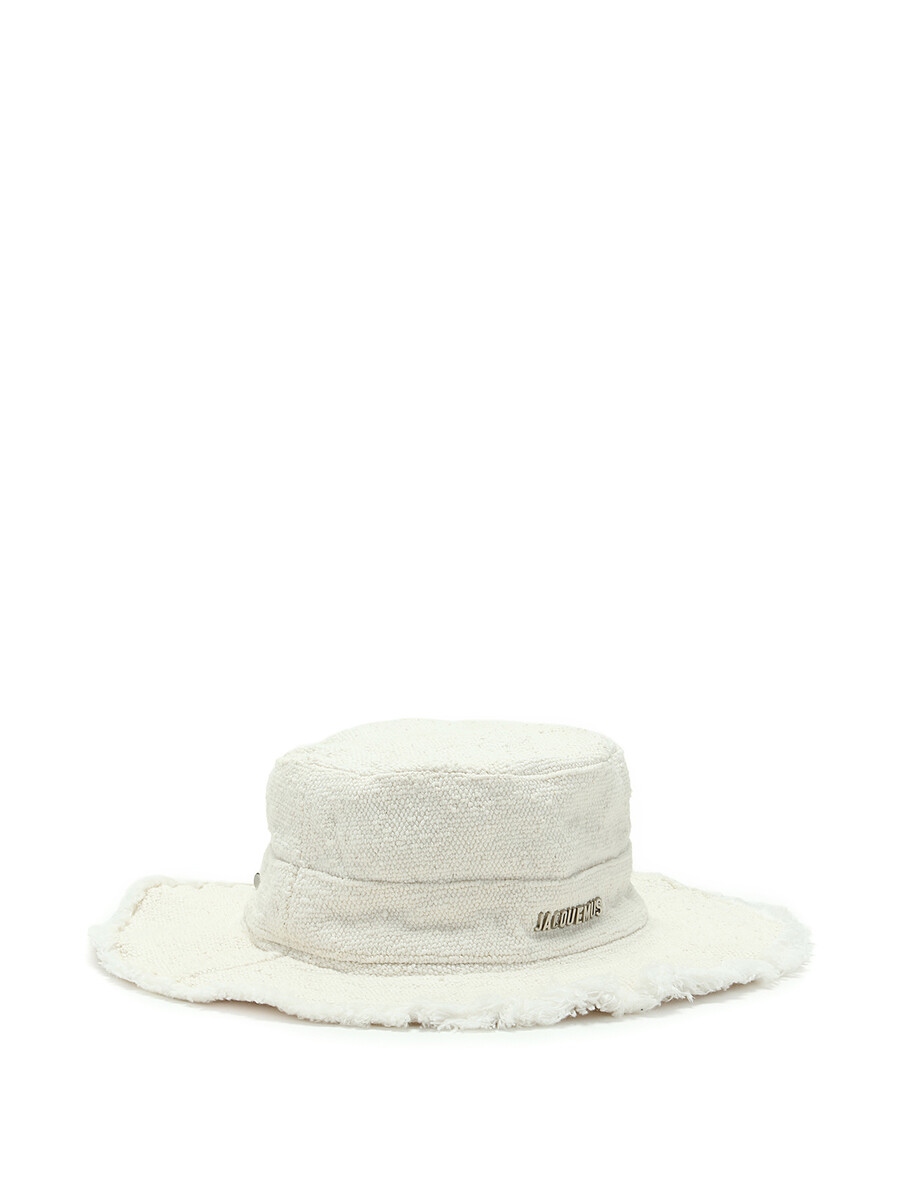 Cotton canvas frayed edge bucket hat in off-white.