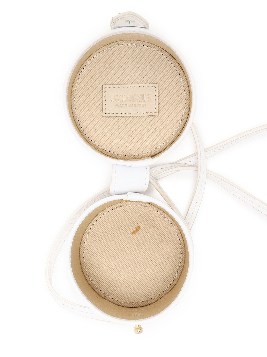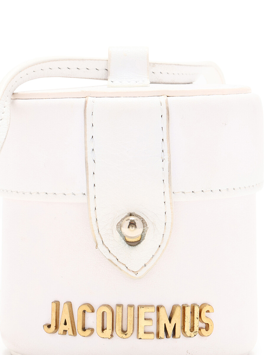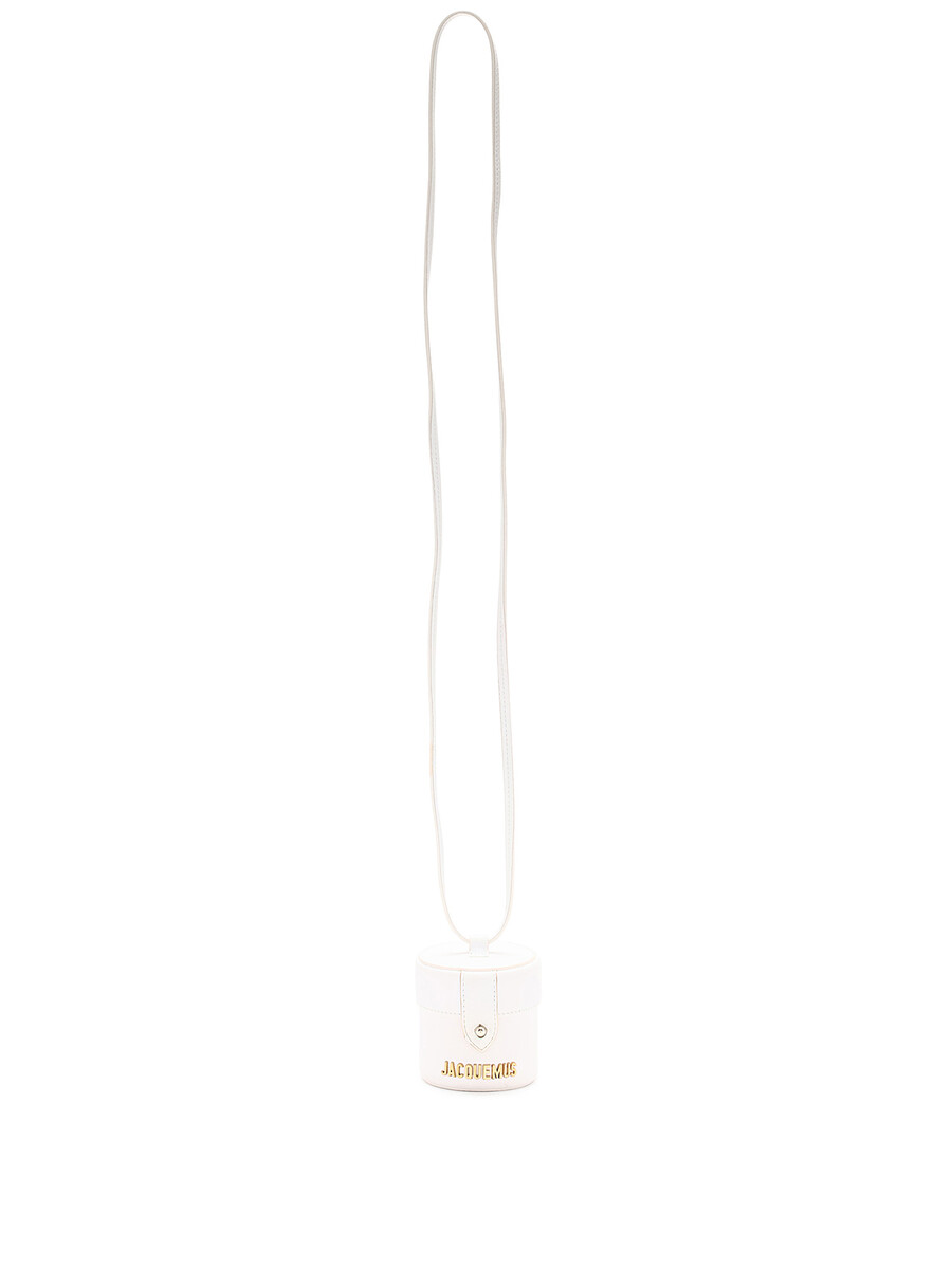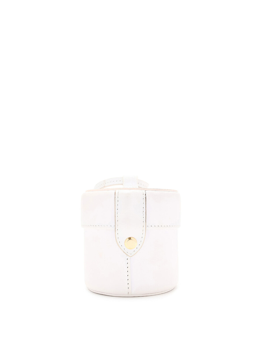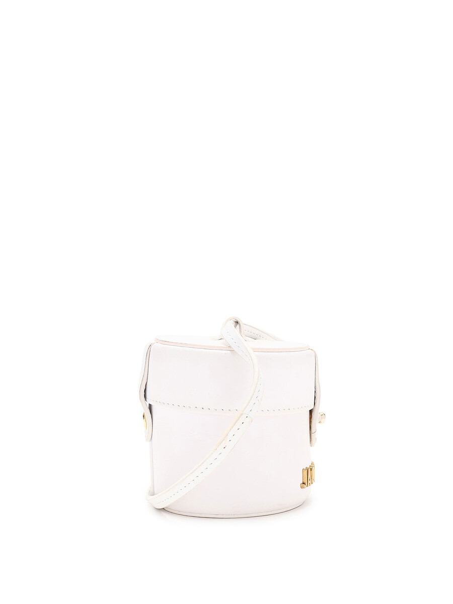 Mini bucket bag in white leather. Gold-tone hardware. Detachable shoulder strap. Includes dust bag.