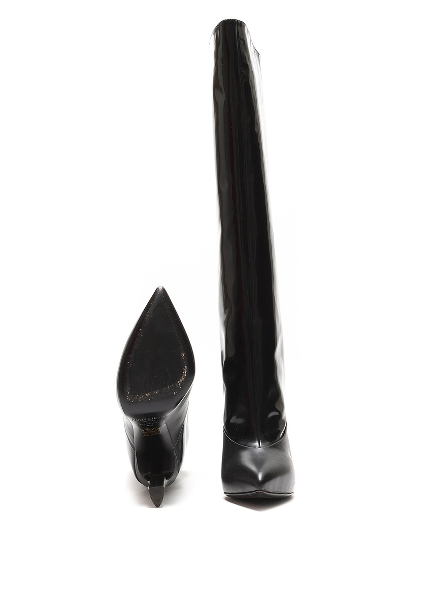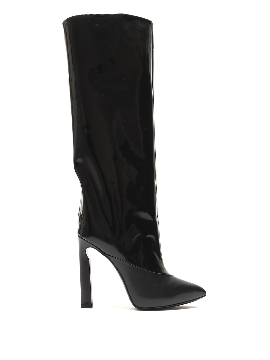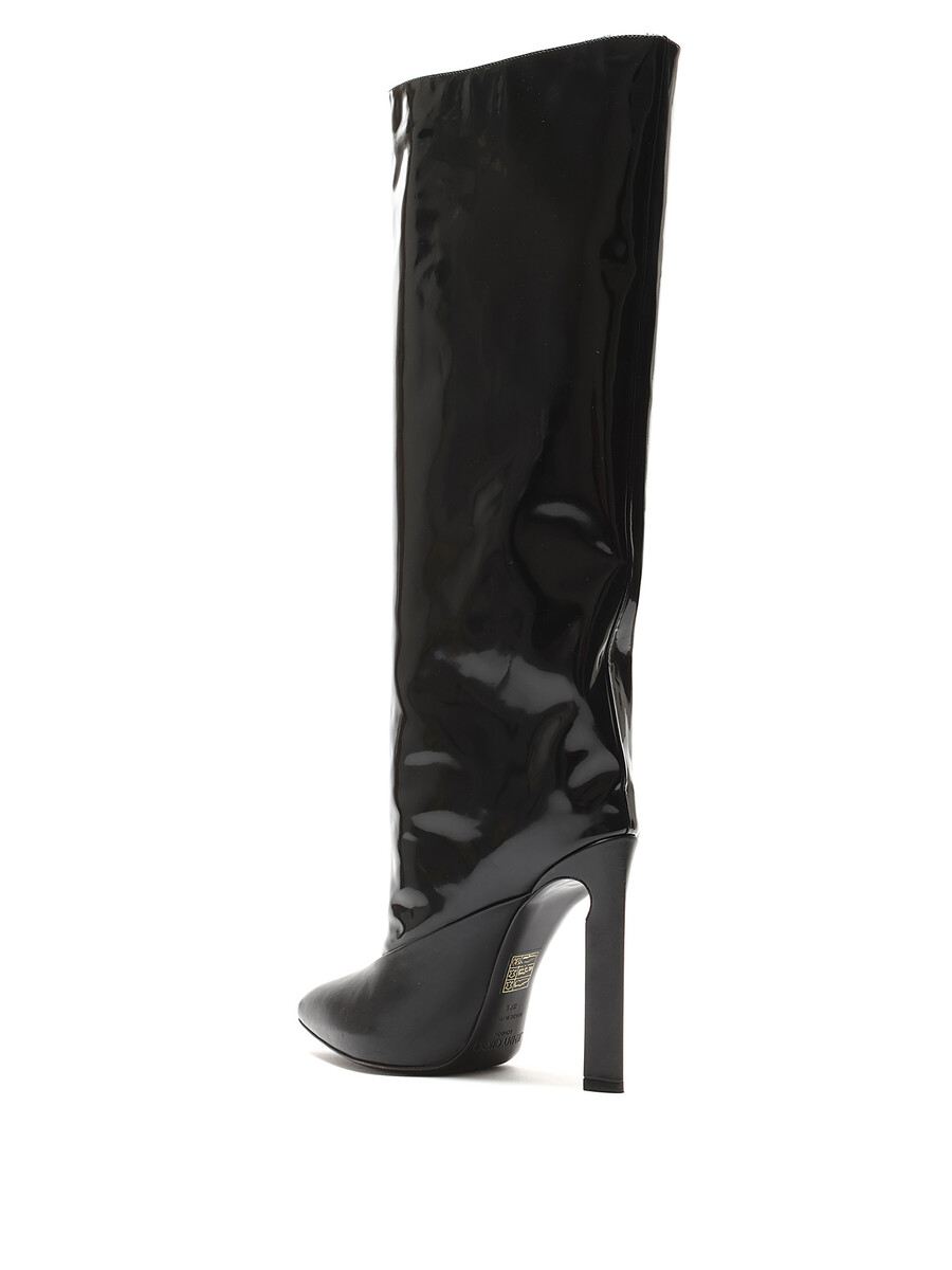 Smooth leather knee-high boots in black with a sleek silhouette. Pull-on design. Pointed toe and leather sole.
