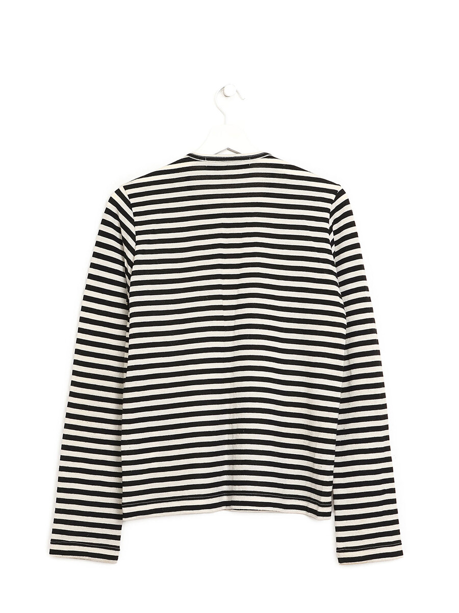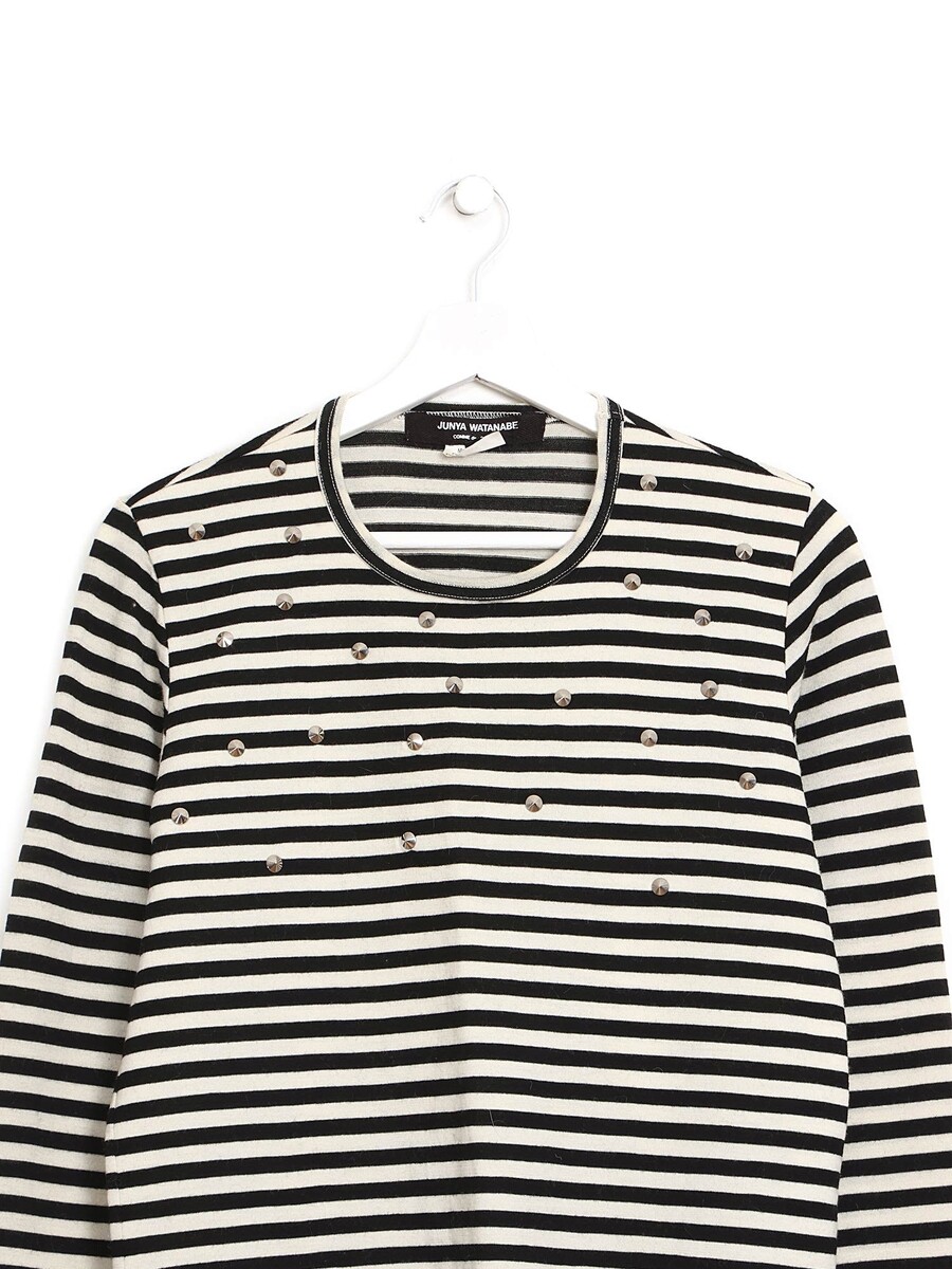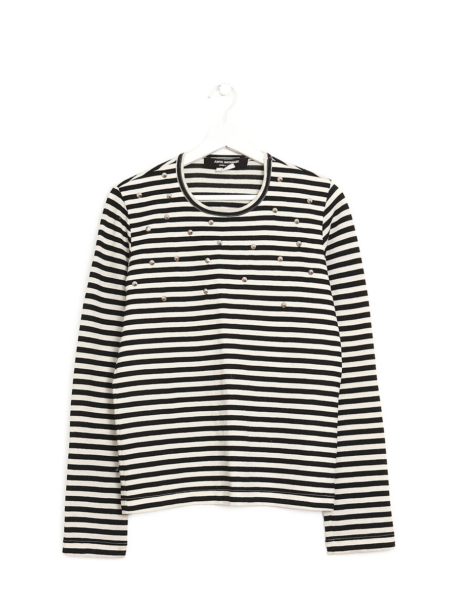 Striped long sleeve top in black and cream with stud detailing at the front.