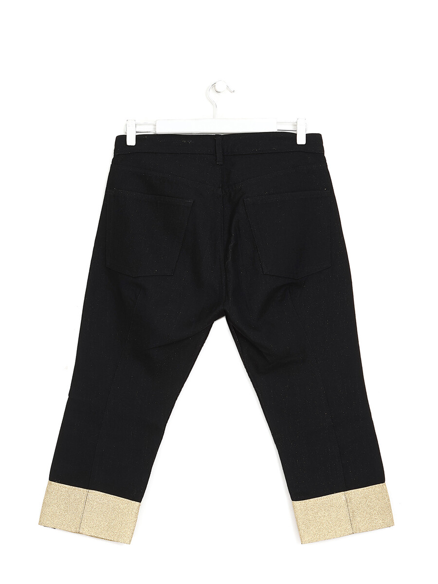 Cropped wool-blend trousers in black. Front button closure with side and back pockets. Tailored fit.